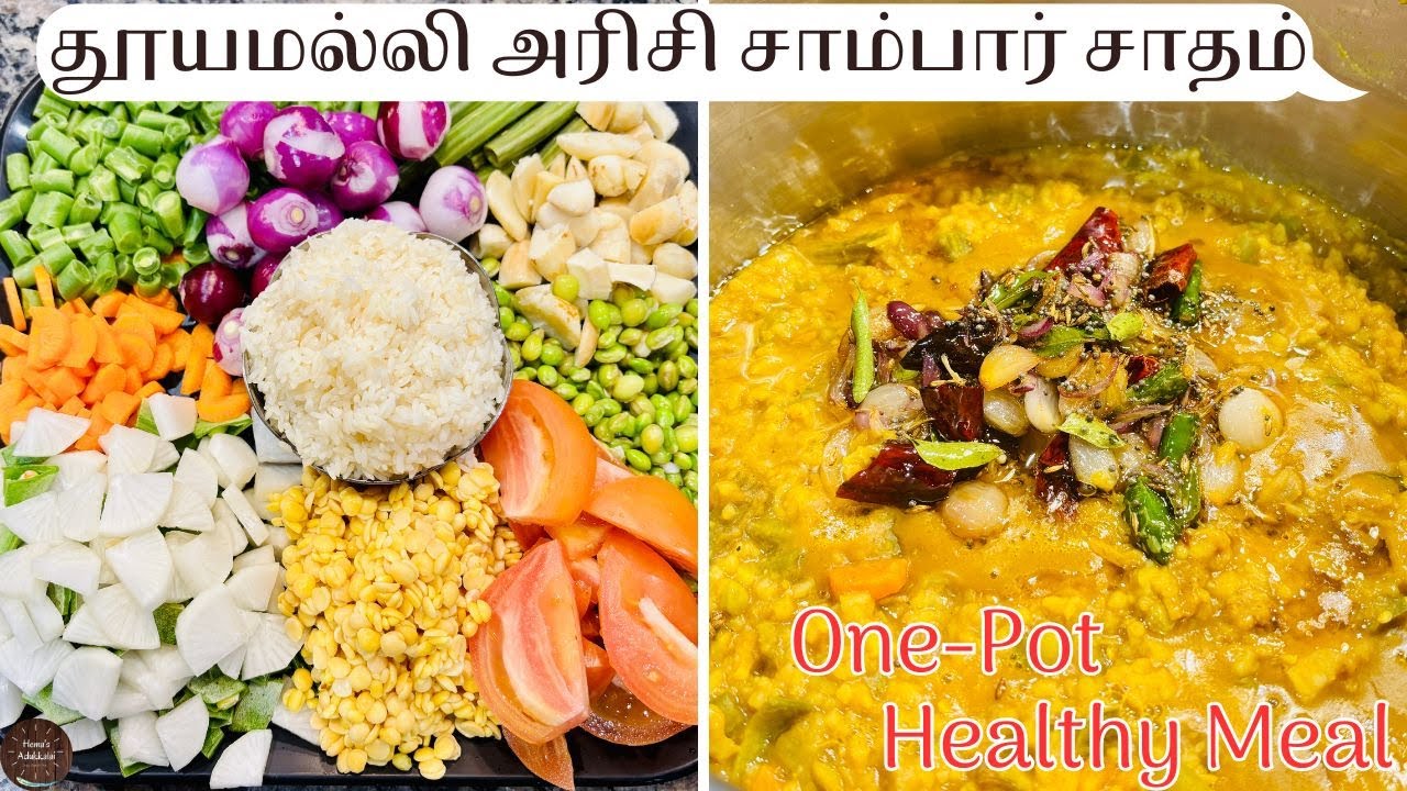 #sambarsadham #bisibelebath #healthyrecipes #thooyamalliricesadham #sambarsatham #onepotmeal #lunchboxrecipe #onepotrice #easylunchboxrecipe #lunchboxrice #onepotmealrecipe #traditionalrice #onepotrecipe