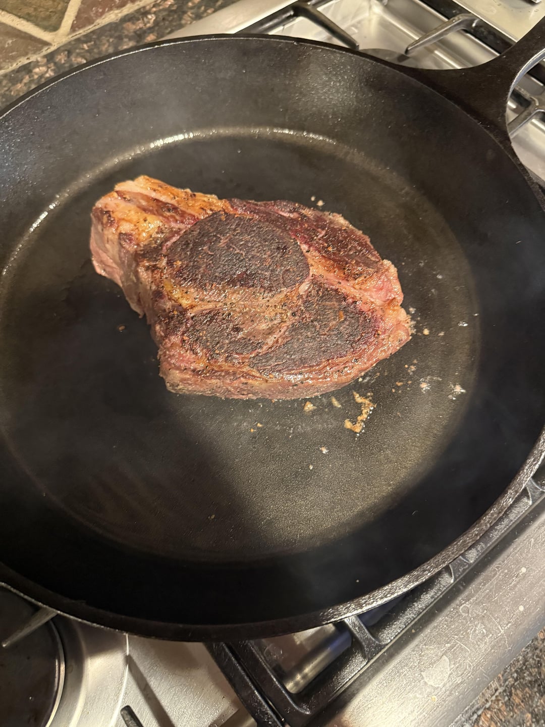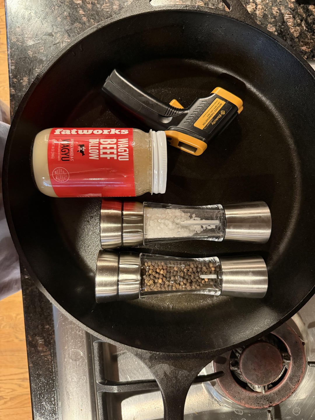 Sear with A5 wagyu tallow in a ripping hot cast iron skillet.