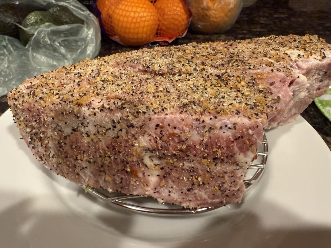 USDA Prime chuck eye roast (before anyone says that's a ribeye that's also what I said to the butcher at the sole remaining stand alone old school butcher in the area and he said no it's just the first cut of the chuck where it meets the ribeyes). A little over 2lbs at $12/lbs. Pricey in the NYC metro area