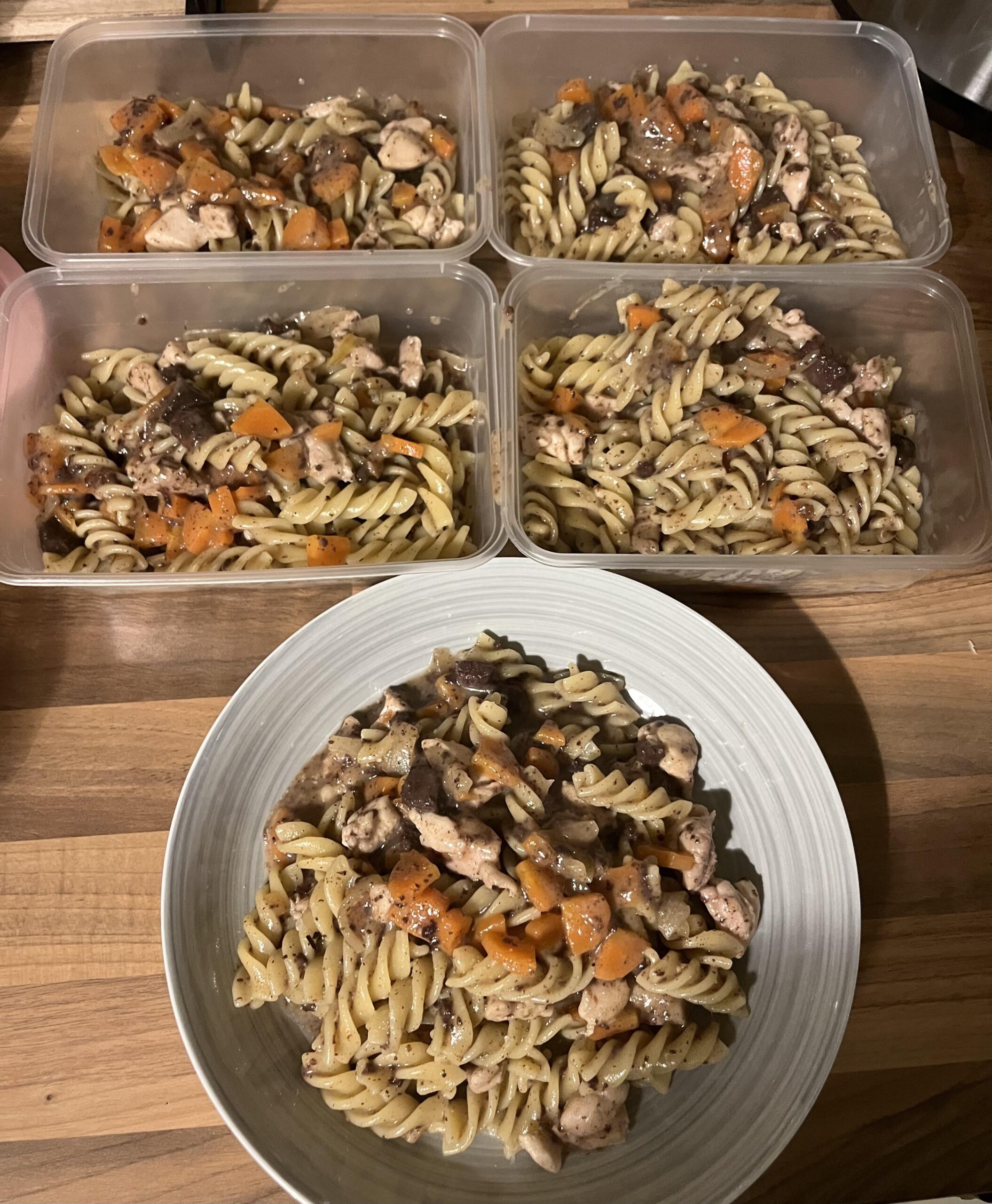 Dinner for myself and my husband today until Friday. It made 6 portions, husband is faster than the camera!