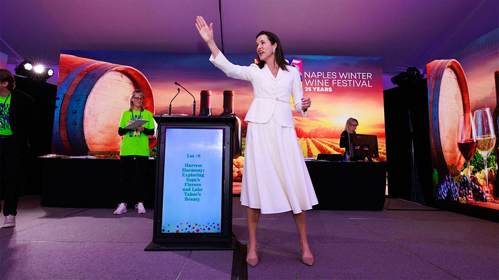 This year’s 52 lots for the live auction featured one-of-a-kind cars, luxury travel, private concerts and personalized dining experiences—and, of course, outstanding wines. The top lot, which sold for $1.7 million, was a 2025 Bentley Continental GT Speed Convertible. The 771-horsepower vehicle, in bespoke trim, was paired with a VIP experience at the Monterey Car Week this August.