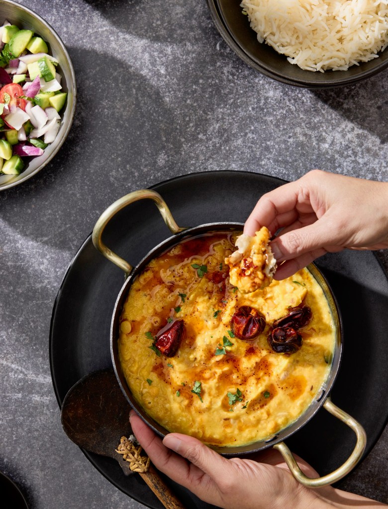 Tarka daal is a vegan recipe featuring yellow lentils with chile-cumin oil. Courtesy Neetu Laddha/neetuladdha.com.