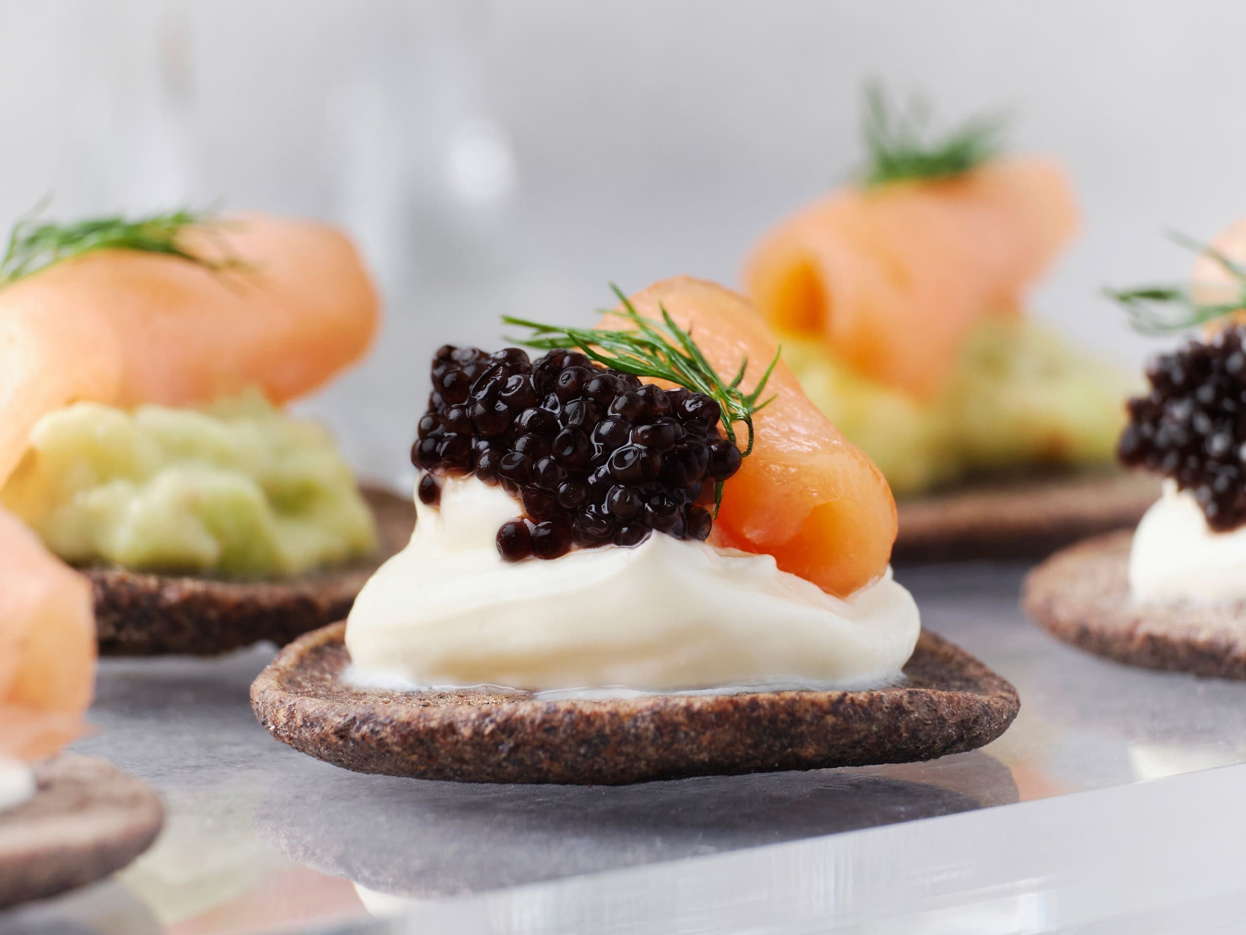 “Not a lot of people like the taste of caviar. It can be intimidating, especially when considering its price and bold flavor profile. But with that said, we made sure to offer complementary flavors that would allow clients to ease into the experience of eating caviar,” she expounds.