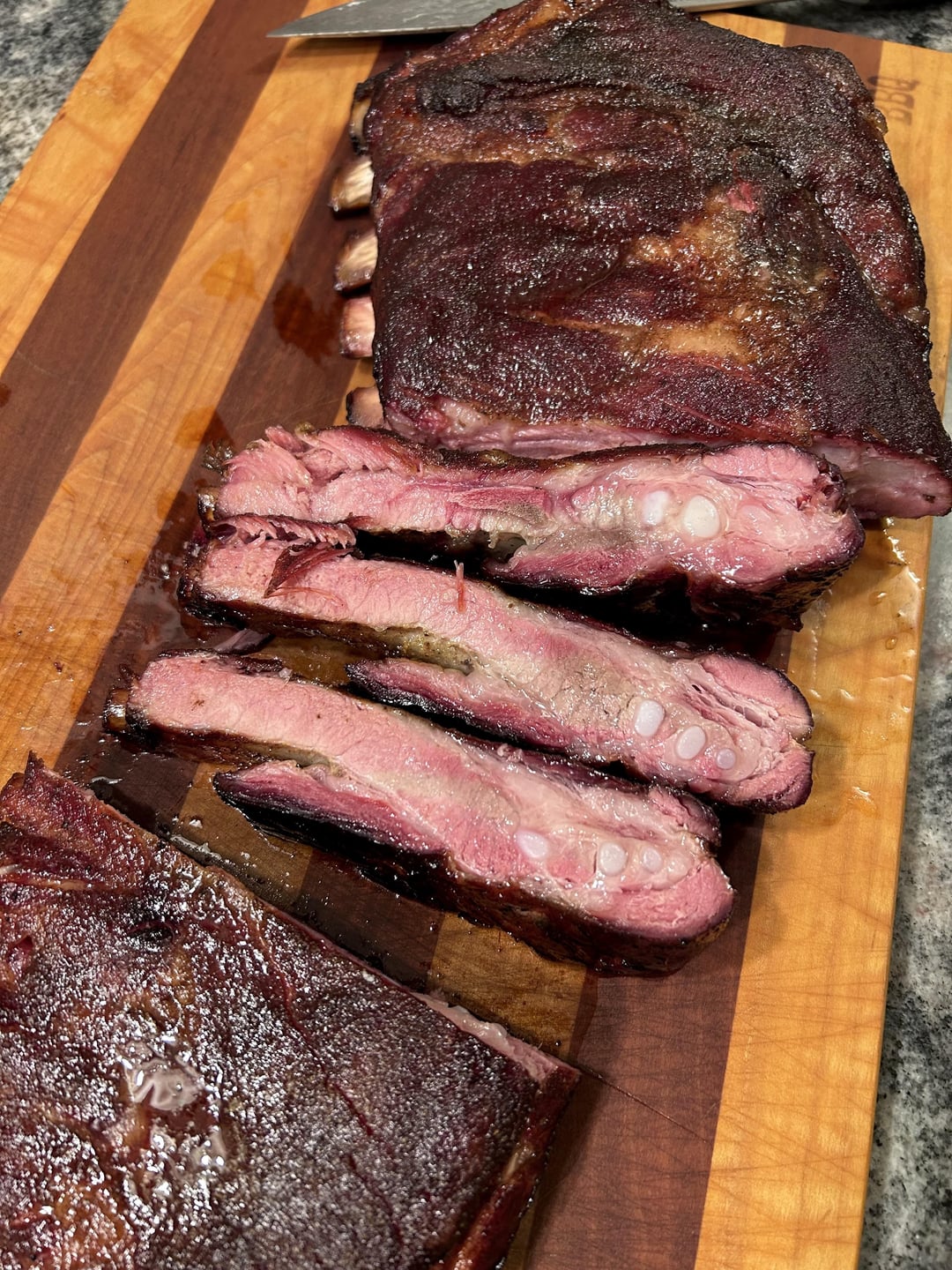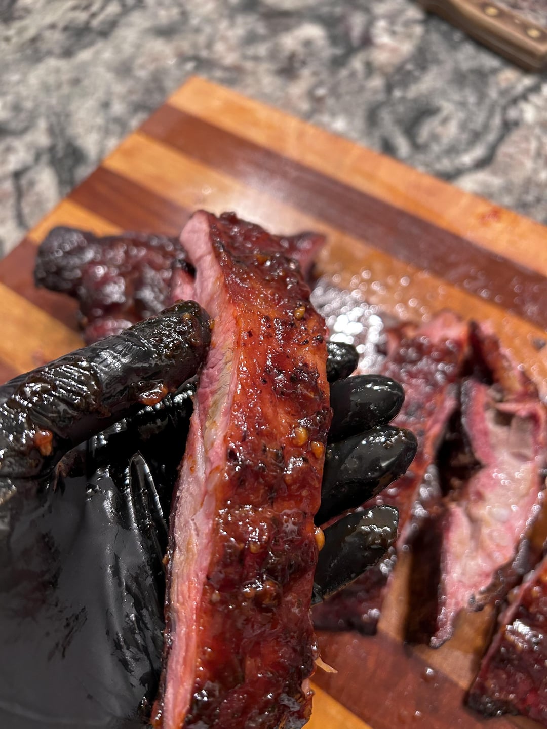 South African Spiced Pastrami, Korean Ribs, Hot Honey Ribs. Smoked with hickory and whisky barrel.