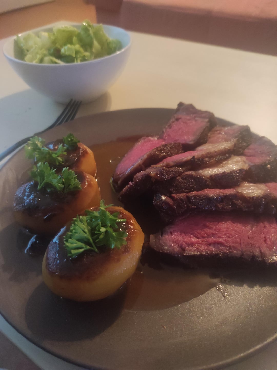 Elegant and simple meal. Beautifully cooked meat. Cheers!