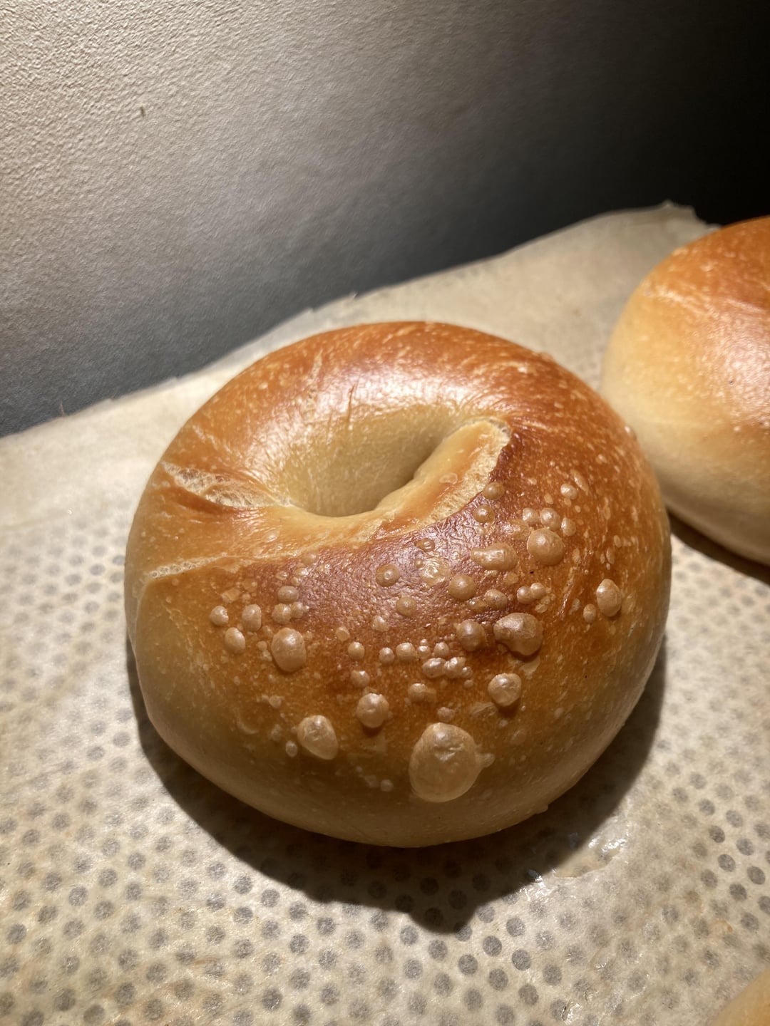 Boiled in barley malt syrup for 25 seconds on each side. Baked at 250ºC for 5 minutes, then 13 minutes at 220-230ºC.