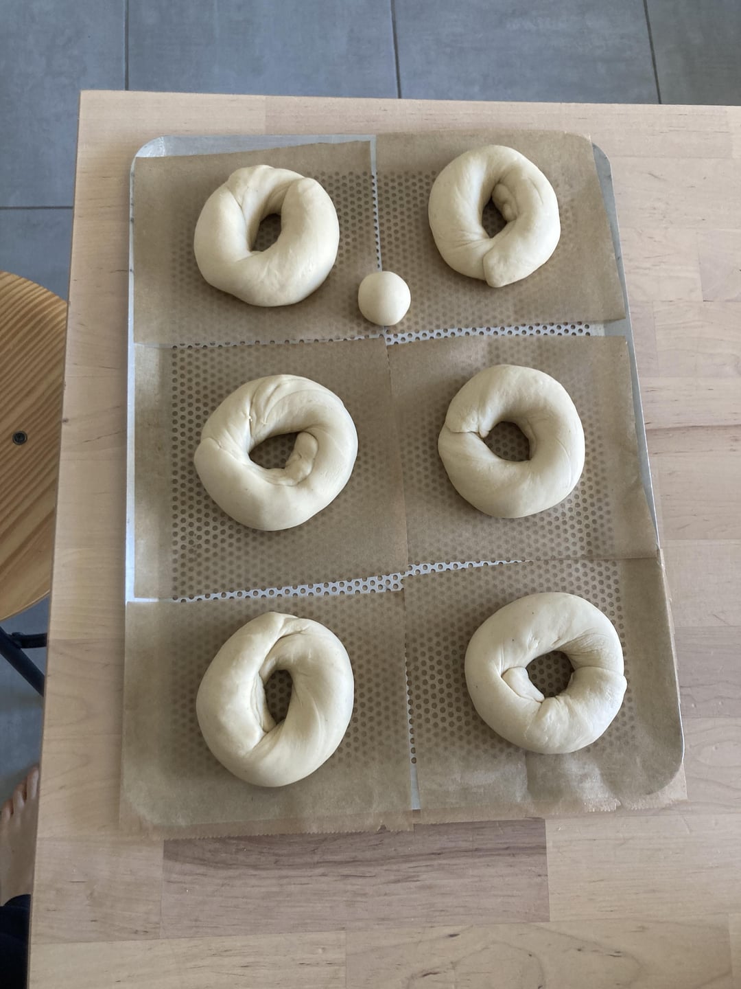 I wanted to use my sourdough discard in my bagels. My starter is 2 weeks old and I still haven’t used it to make bread. I used the following rule to tweak my usual bagel recipe to include the discard :