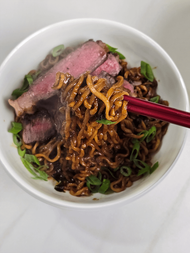 Jjapaguri with Steakby omoonbeat 1 Comment omoonbeat 11 months ago https://preview.redd.it/wqtapdvu4ype1.png?width=1020&format=png&auto=webp&s=a9d56270a1bcbc5fdeb300fc2f3c03428b03351fDetailed Recipe -> [https://miroanotion.co.kr/jjapaguri/](https://miroanotion.co.kr/jjapaguri/)Write A CommentYou must be logged in to post a comment.