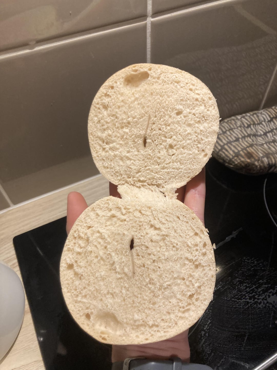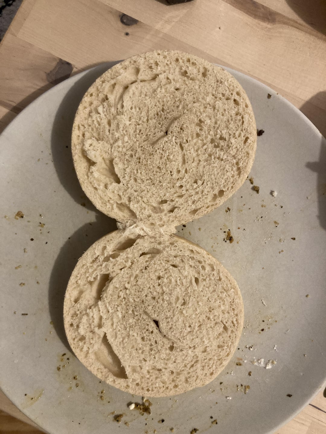 I think those are the best bagels I’ve ever made. The crust is thin but still noticeable, with a powerful malt flavor. The crumb is dense and very chewy (in a good way), yet super soft with a complex flavor, thanks to the malt and the discard.