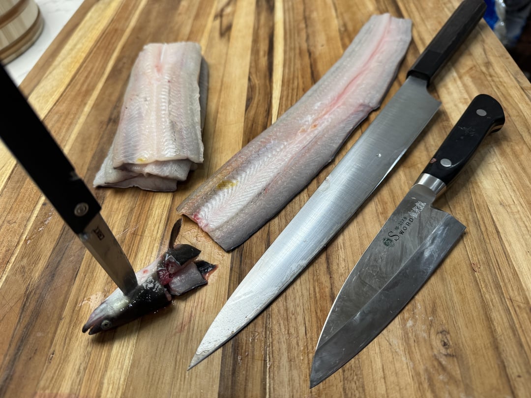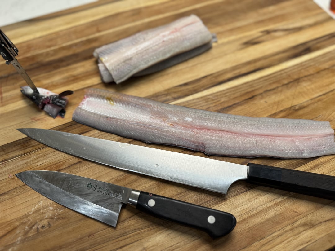 Most people don’t bother filleting unagi here in the states, because you can buy it pre-seasoned in a vacuum sealed package and just put it in the oven. But I am not one of those chefs…