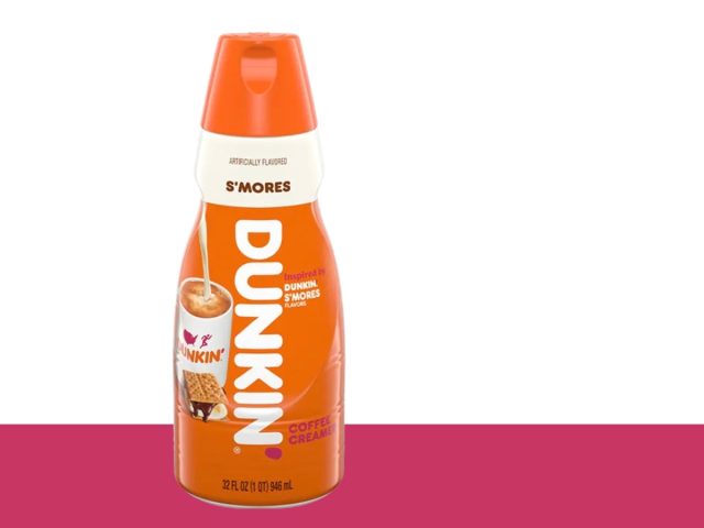 Dunkin’s S’mores creamer is sweet indulgence, but it has the highest amount of sugar on our list and contains unhealthy ingredients.