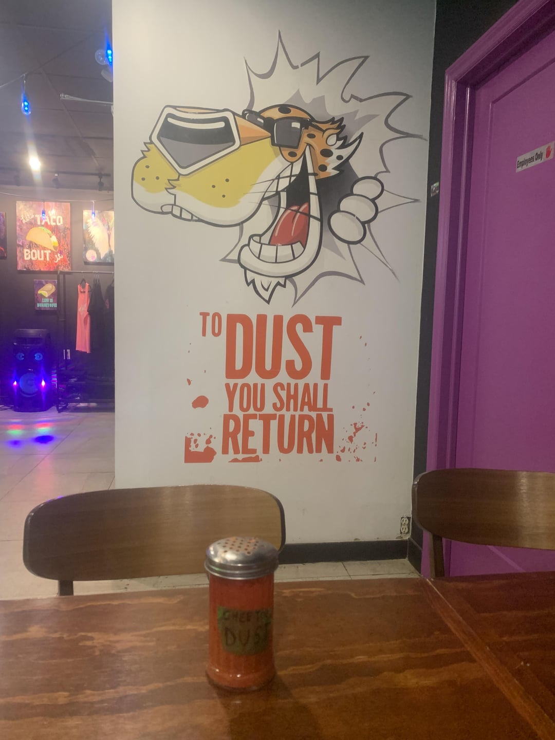 I saw cheetos dust spice in a taco restaurant and put it in my tacos Its red hot cheetos crushed upWould you put it red hot cheetos dust on your tacos?by rogers12345678 Write A CommentYou must be logged in to post a comment.