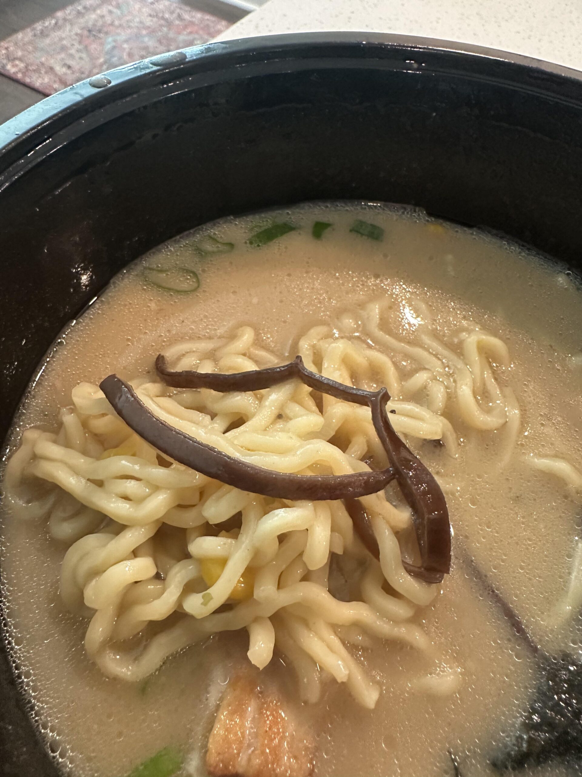 I forgot which mushrooms they’re called… But, yeah, those are mushrooms. They’re kind of crunchy mushrooms when cooked a certain way. Shows up in ramen and in lots of Asian dishes.