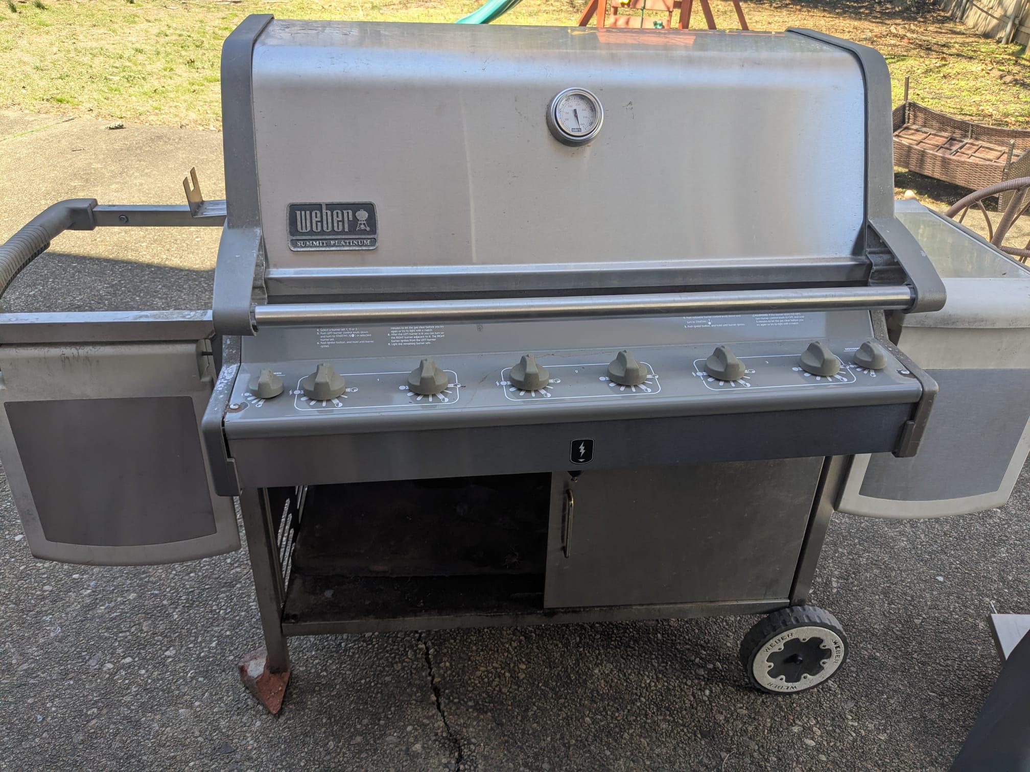 All of the parts are there (side burner is getting cleaned, the door on the bottom fell off but will be replaced, we did lose one wheel but that's an easy purchase). The last owner said it should work, so fingers crossed.