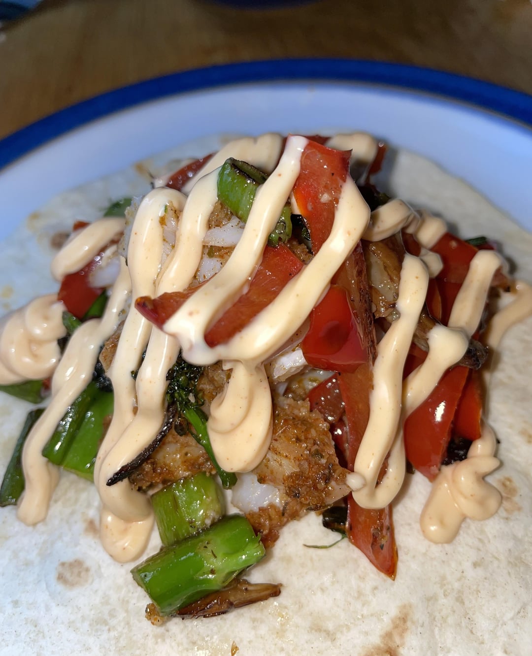 Jerk Fish Tacos• Homemade jerk seasoning• Cod• Broccoli • Red pepper• Oyster mushrooms • Sriracha mayo• Tortillaby CoupCooks Write A CommentYou must be logged in to post a comment.