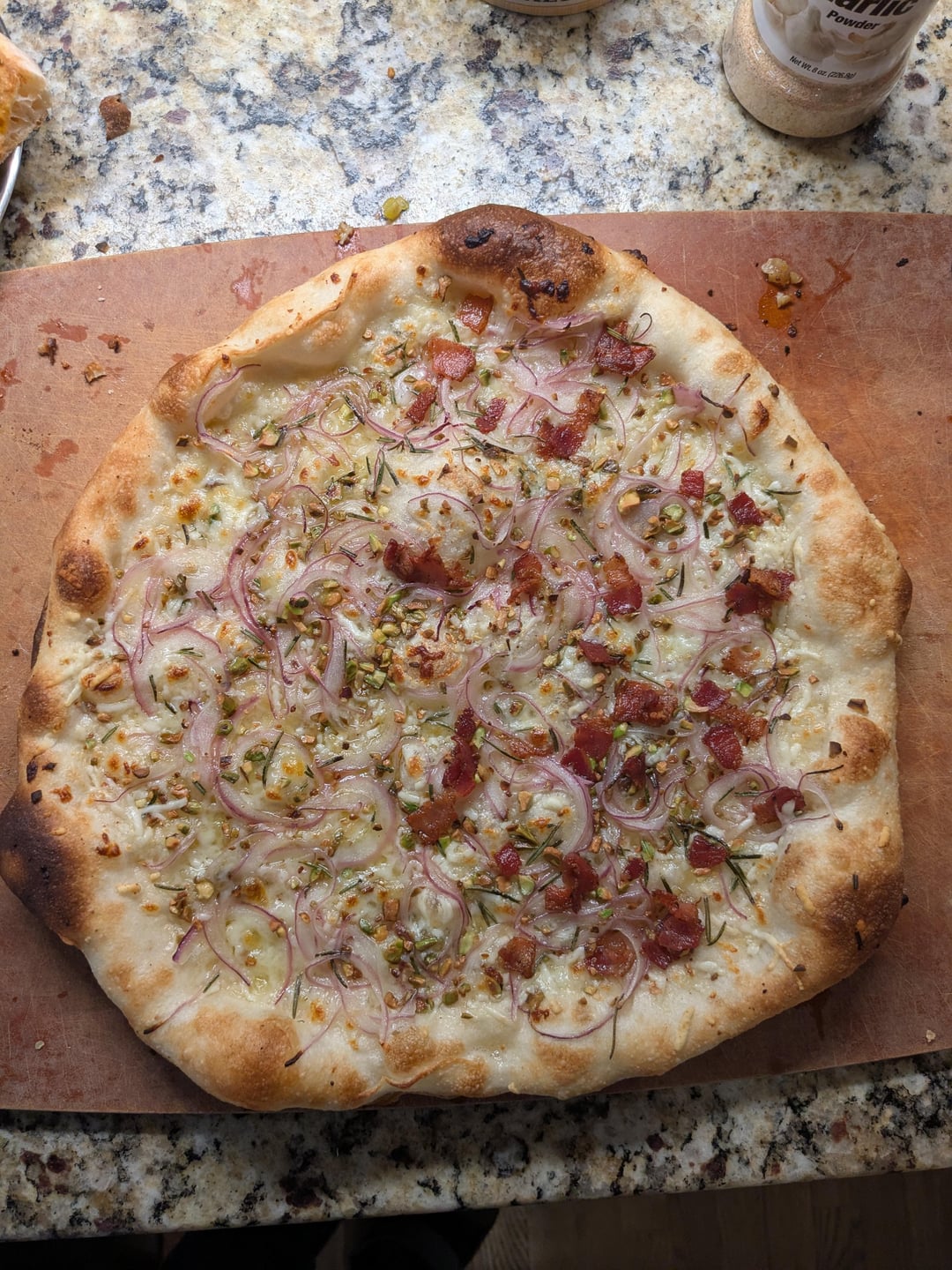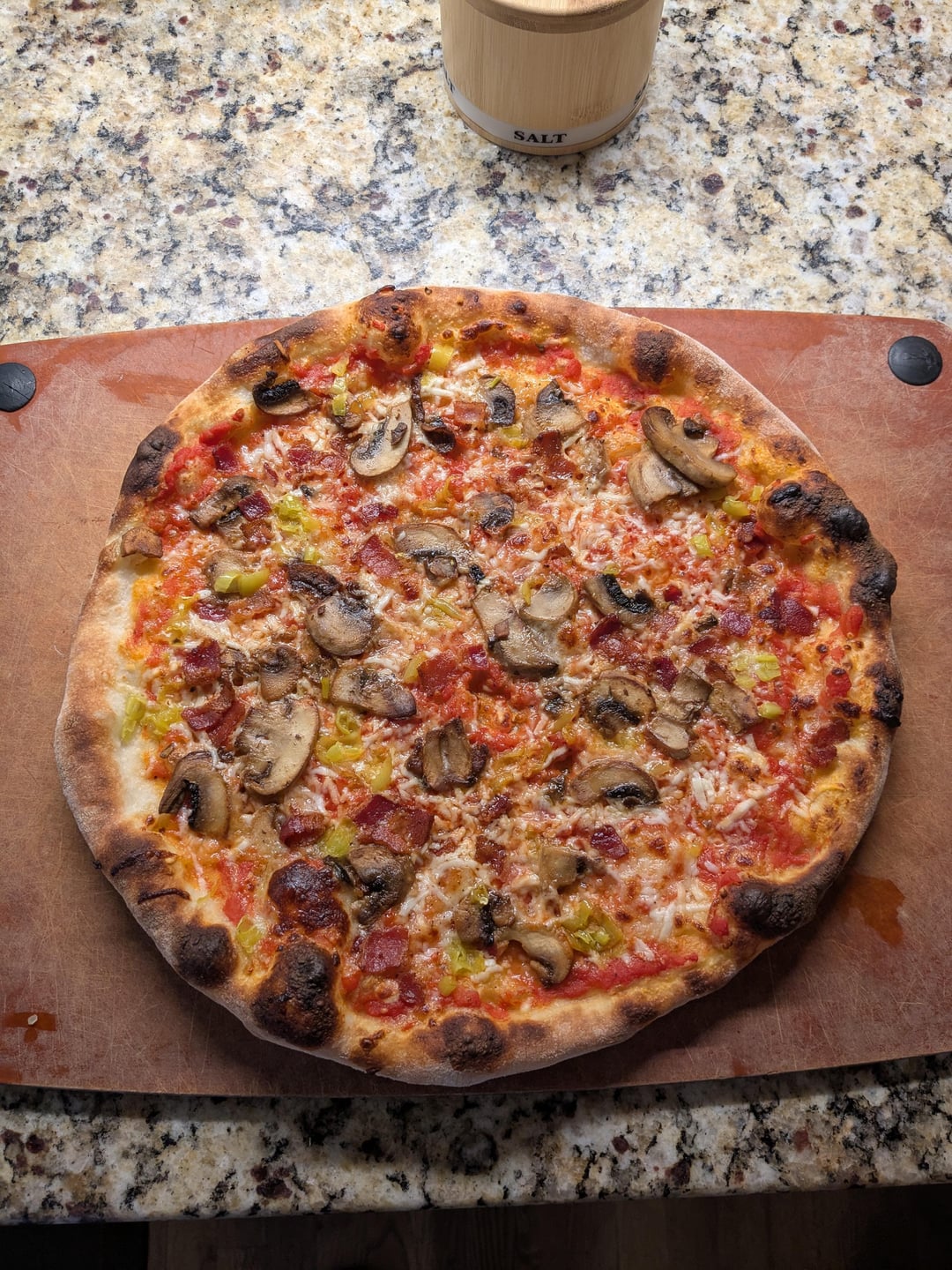 1st is mushroom, bacon, pepperoncini
