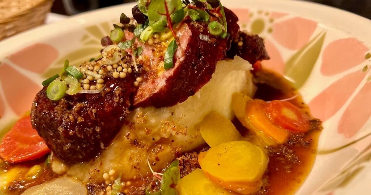 Here comes the salade Lyonnaise again, and also the pâté-croûte, shot through with pistachio, encased in pastry. A vol-au-vent, that column of puff pastry New Orleans loves to fill with oysters or crawfish, is here a vessel for sweet breads and a sauce dancing between delicate and hearty.