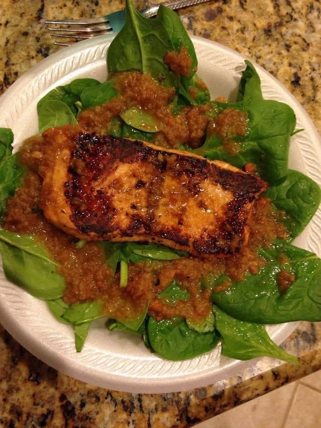 This stuff makes a great salad dressing and marinade. I made a simple salmon over baby spinach and added this on top. Awesome. Would be great with chicken, pork, veggies etc!