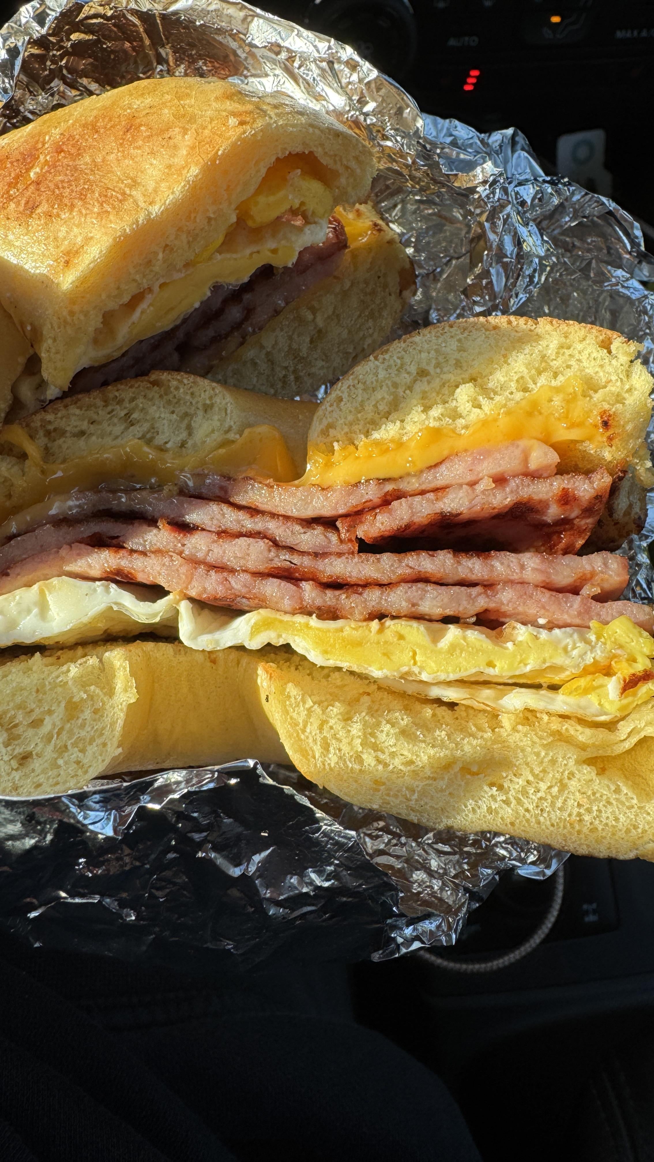 Mom if you please pass me the pork roll, egg, and cheese if you please- on a Kaiser bun.