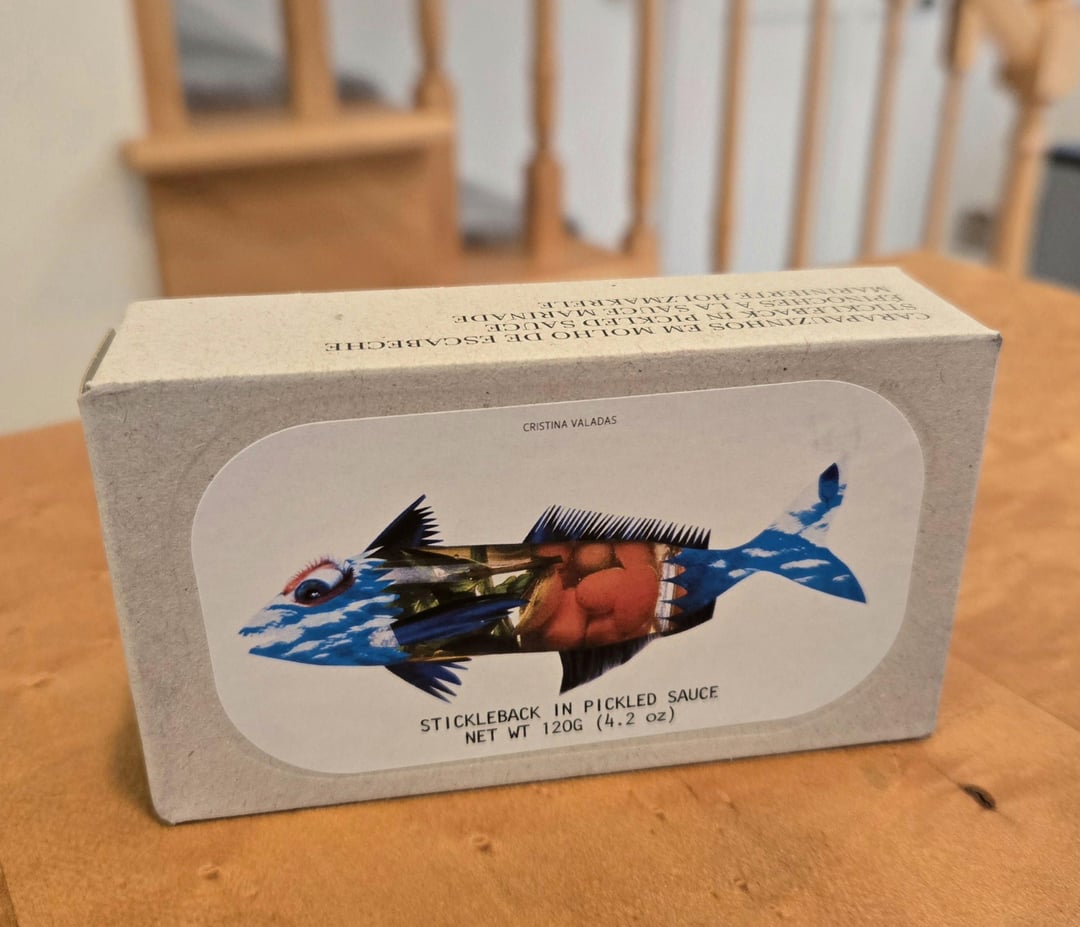(The box says stickleback, but apparently this is a mistranslation.) This was my first try of horse mackerel. Firm meat the way I like it (though "fishiness" avoiders might not care for it; it has a strong fish flavor). Drier than regular mackerel. The "pickled sauce" tastes a lot like Espinaler. Fun and interesting to add a new fish to my RTG conservas chart 😆, but at $12, I think I'll just pour Espinaler on my favorite sardines or mackerel. 😉 Incidentally, when I googled horse mackerel to learn more about it (as I do the first time I try anything), I realized that it was aji, which I've often enjoyed as sashimi and freshly grilled. It's always interesting how different a fish will taste in various states of cooking (or not).