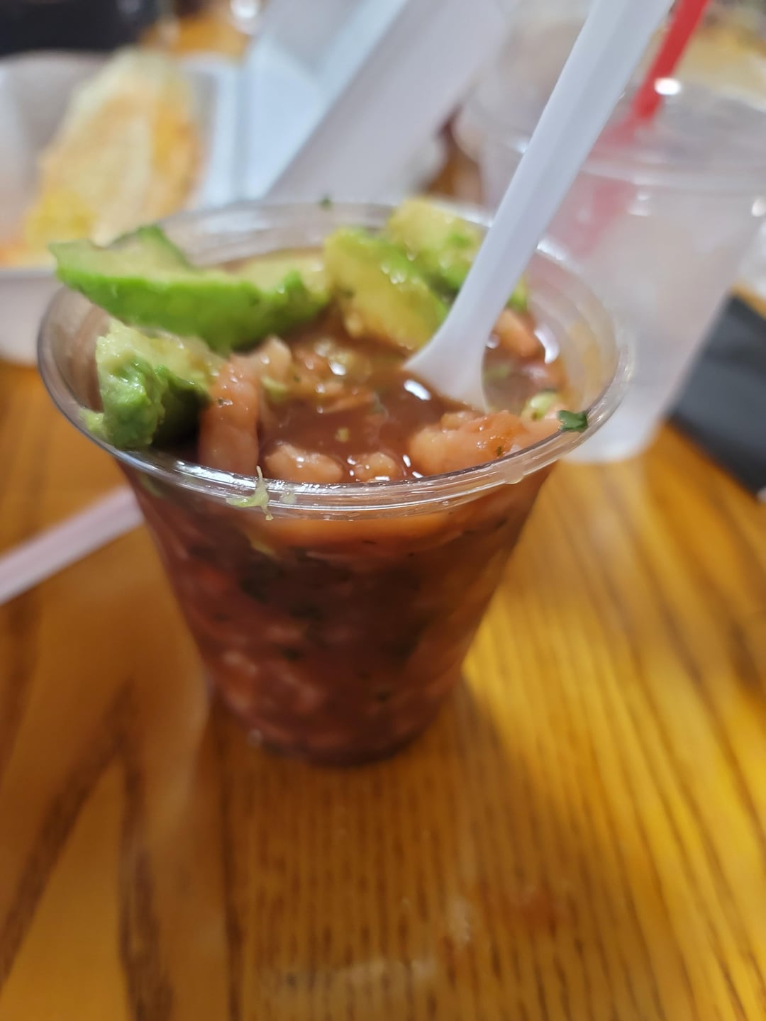The snack was from a local Mexican treat shop. I had the ceviche with avocado and felt good about my choice. Yum! Next time I'm getting the elote too, sans toppings. It was filling enough I passed on their amazing desserts. The fruit with crema looked amazing though.