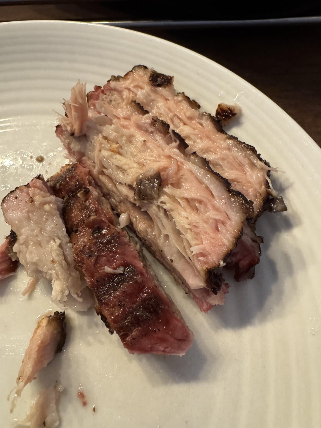 Had some friends over, they wanted barbecue. Went and grabbed a pork belly of 2kilos and just sprinkled it with salt, pepper and garlic. 110c with apple and cherry chunks. Wrapped them in foil around 70c and let them go all the way to 93c.