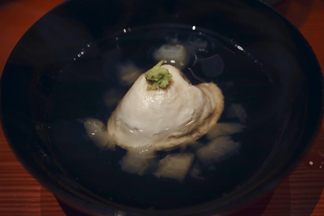 4. Toyohama fugu shirako, beef tail soup, turnip soup: the largest single piece shirako I’ve ever seen, reinforcing the seriousness Tanaka san takes in sourcing the best ingredients. Even before tasting the fragrance just jumps at me. The beef tail soup has a light umami but very balanced flavour, the turnip is sweet and the shirako which is lightly charred pairs really nice with the soup. The shirako is still creamy on the inside, nice savoury and mild sweet flavour.
