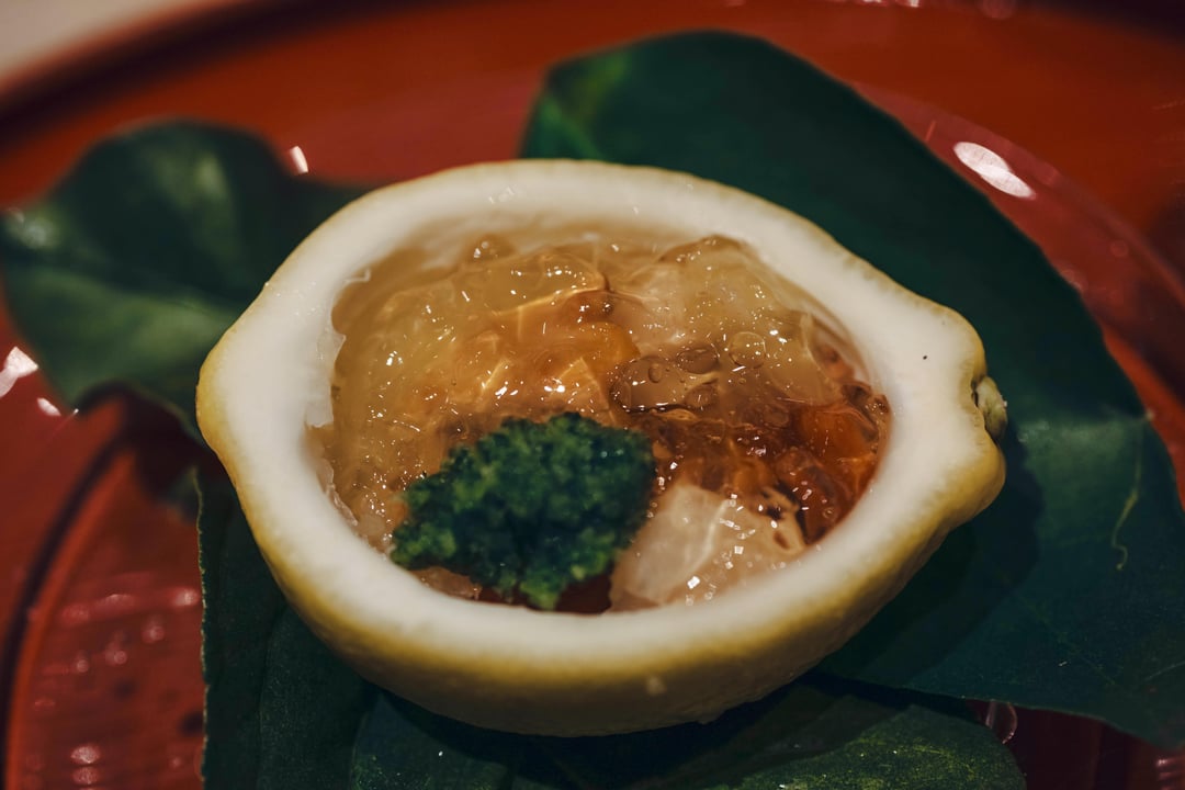 2. Shizuoka lemon, tripe, grilled yuriage akagai: the tripe’s natural flavour was very prevalent, the lemon provides a bit of freshness to counter the tripe. A surf and turf vibe, texture and flavour was unexpected and a good way to try new combinations.