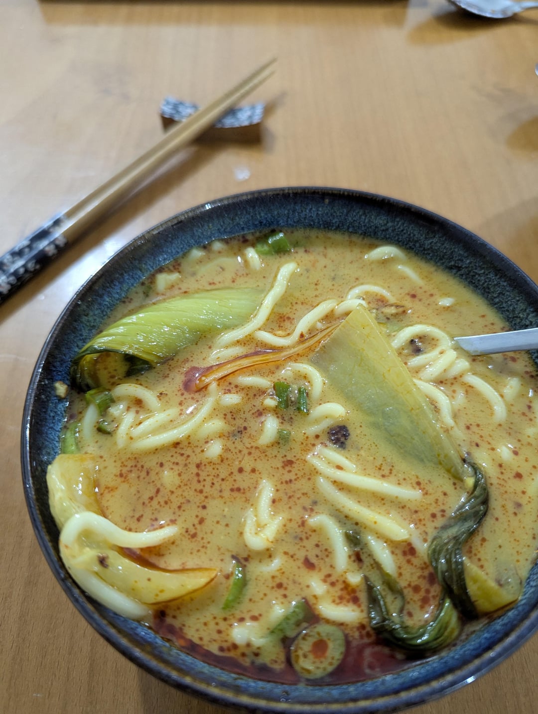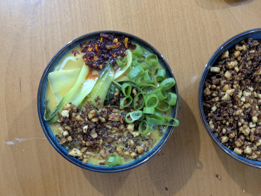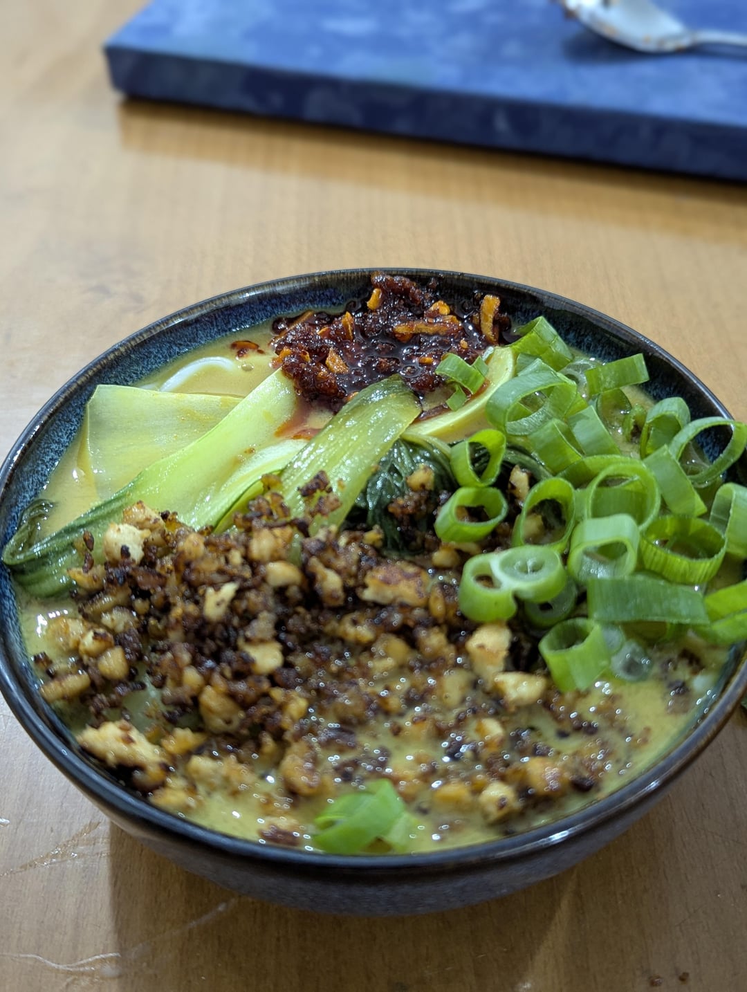 Between the spicy crunch, the nutty broth, and the moreish flavours, this might just be one of the more surprisingly tasty dishes I've made recently, and a good opportunity for my first contribution to this group.