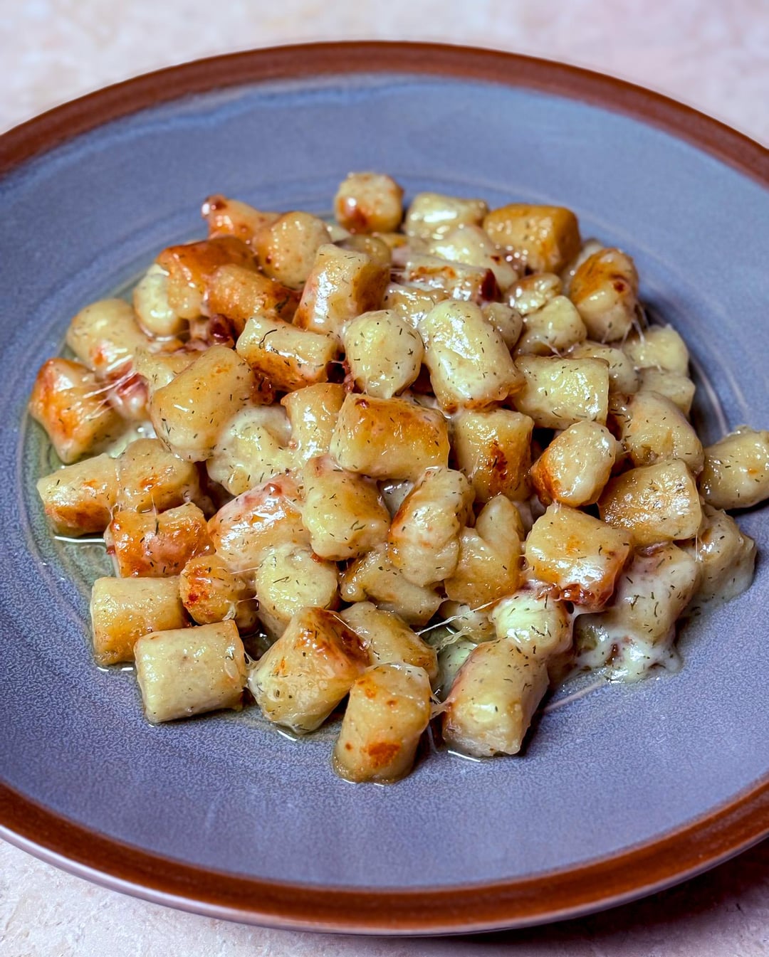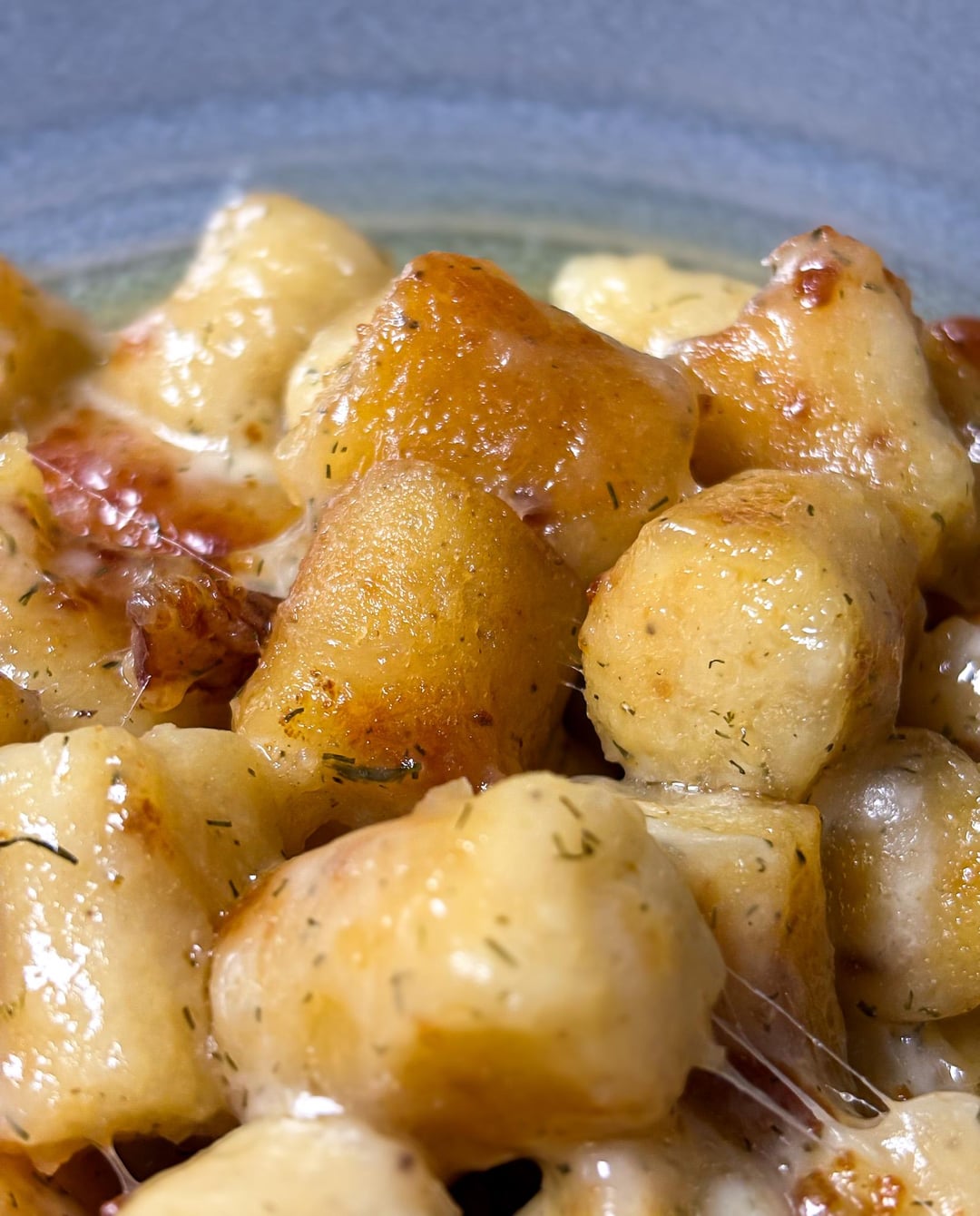FlavorVoyage 7 months ago Basic potato gnocchi recipe, 1 egg yolk, garlic, 10% flour to riced potato ratio (moisture reduction in fridge for 2 days after ricing)Sauteed in rosemary butter, melted Italian black truffle and dill harvarti cheese