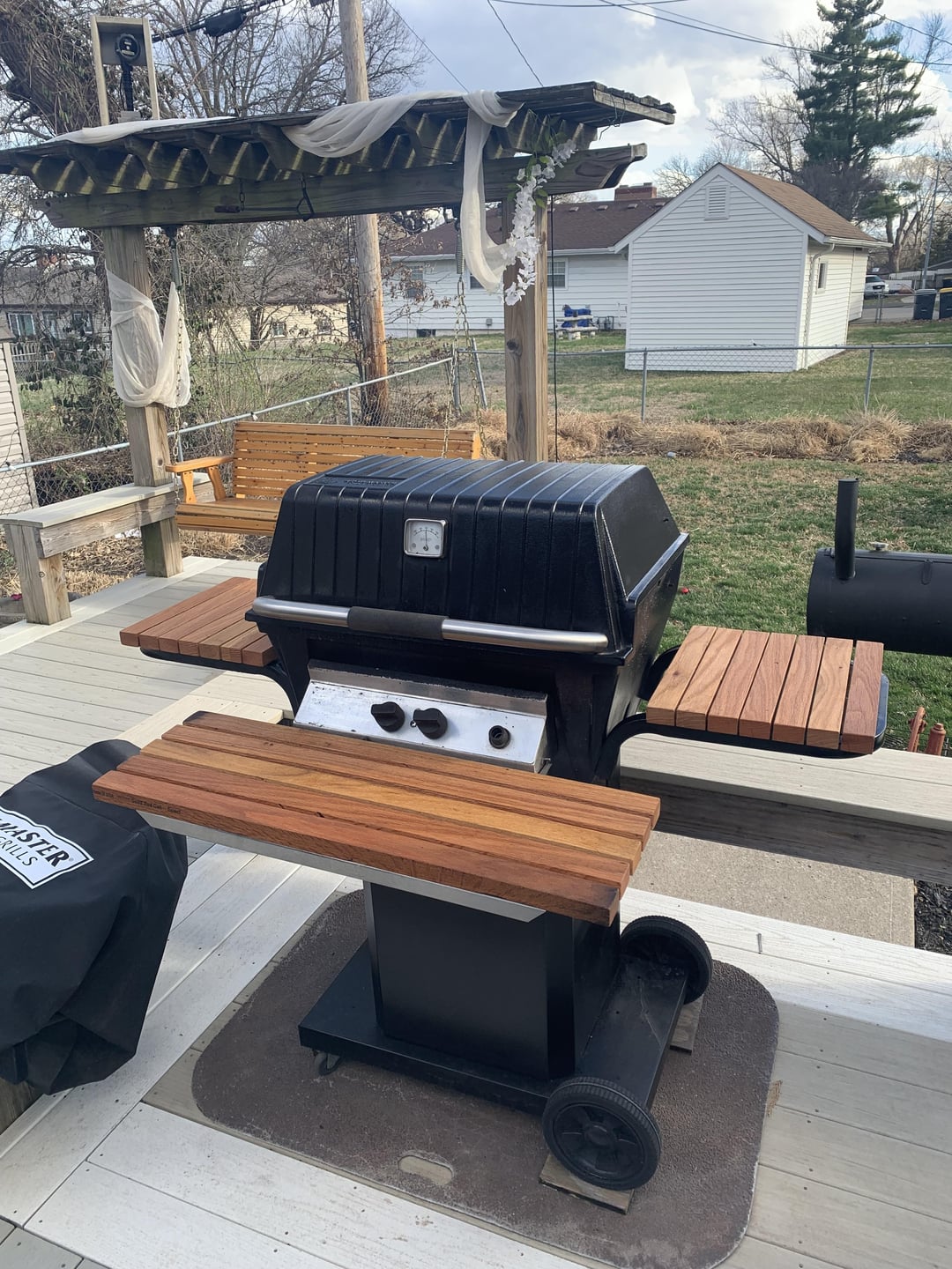 I had $2k saved up for a new grill and was looking at the Napoleon. But this old girl is 30 years old and I’ve love her, so I went another direction. New stainless steel burners. New cast iron grates. Then I had some leftover oak stair treads I turned into shelves. New paint and she’s ready for another 30 years. Some wings to break her back in.