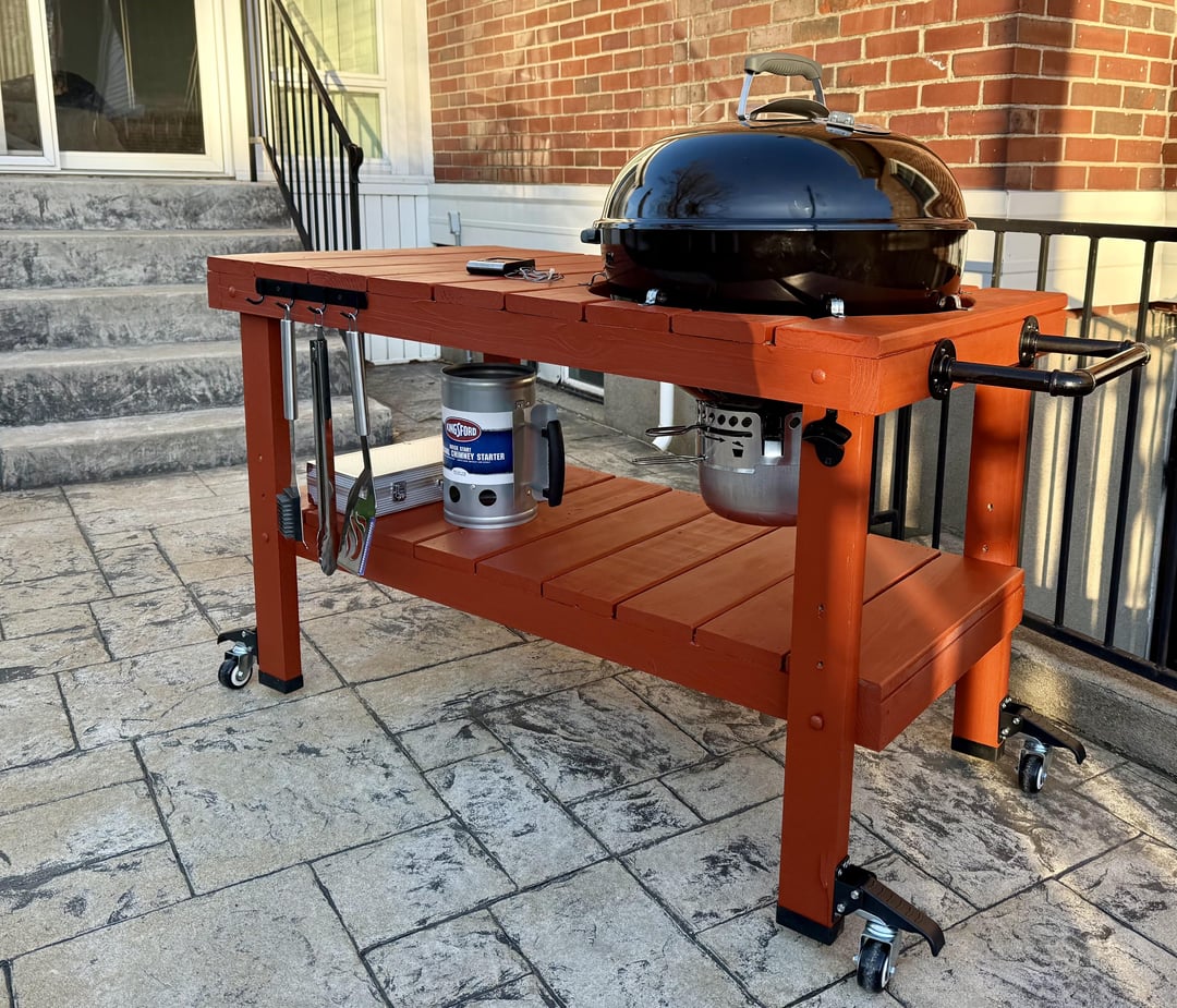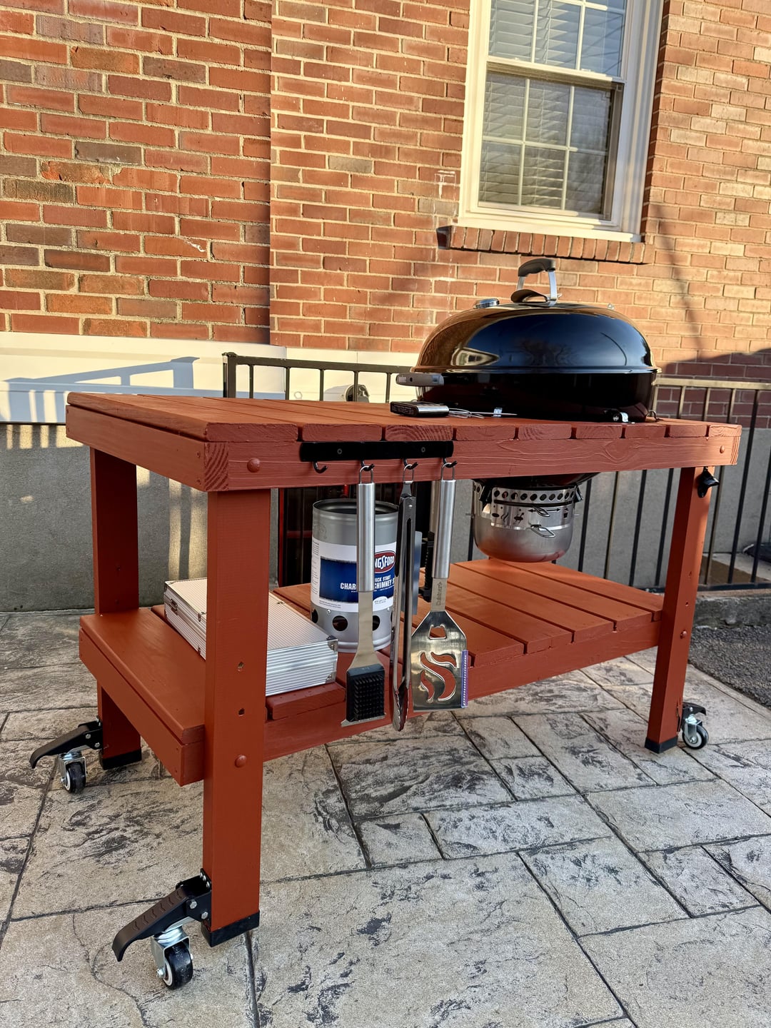 I wanted something that offers more prep space, better organization, and, of course, a nice aesthetic to complement the classic Kettle look. I took ideas from various builds I’ve seen here and put my own spin on it. Can’t wait to cook some meats!