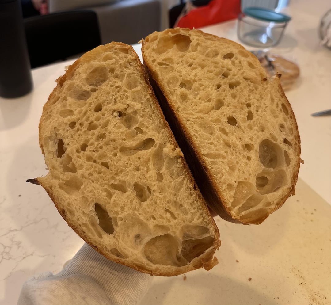 I’m guessing based on the size of the loaf and your hydration you went with 500g of flour? 75% hydration isn’t the easiest for a newbie so again, well done!