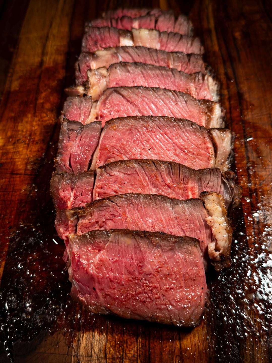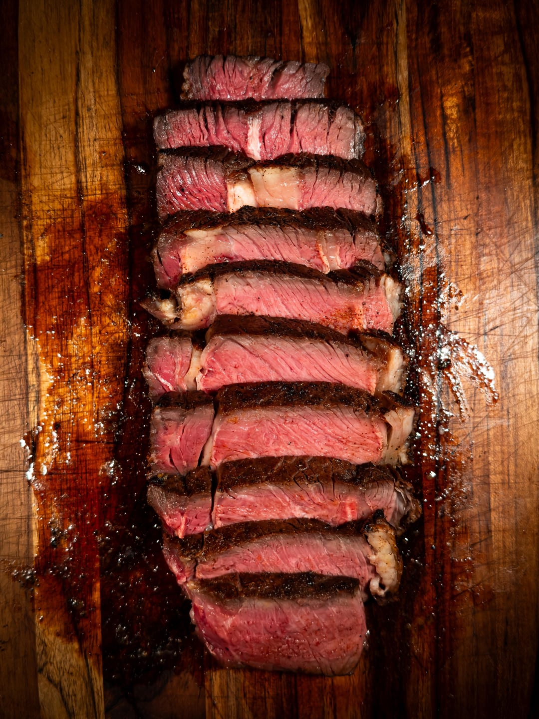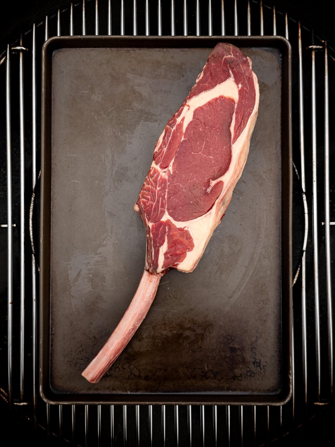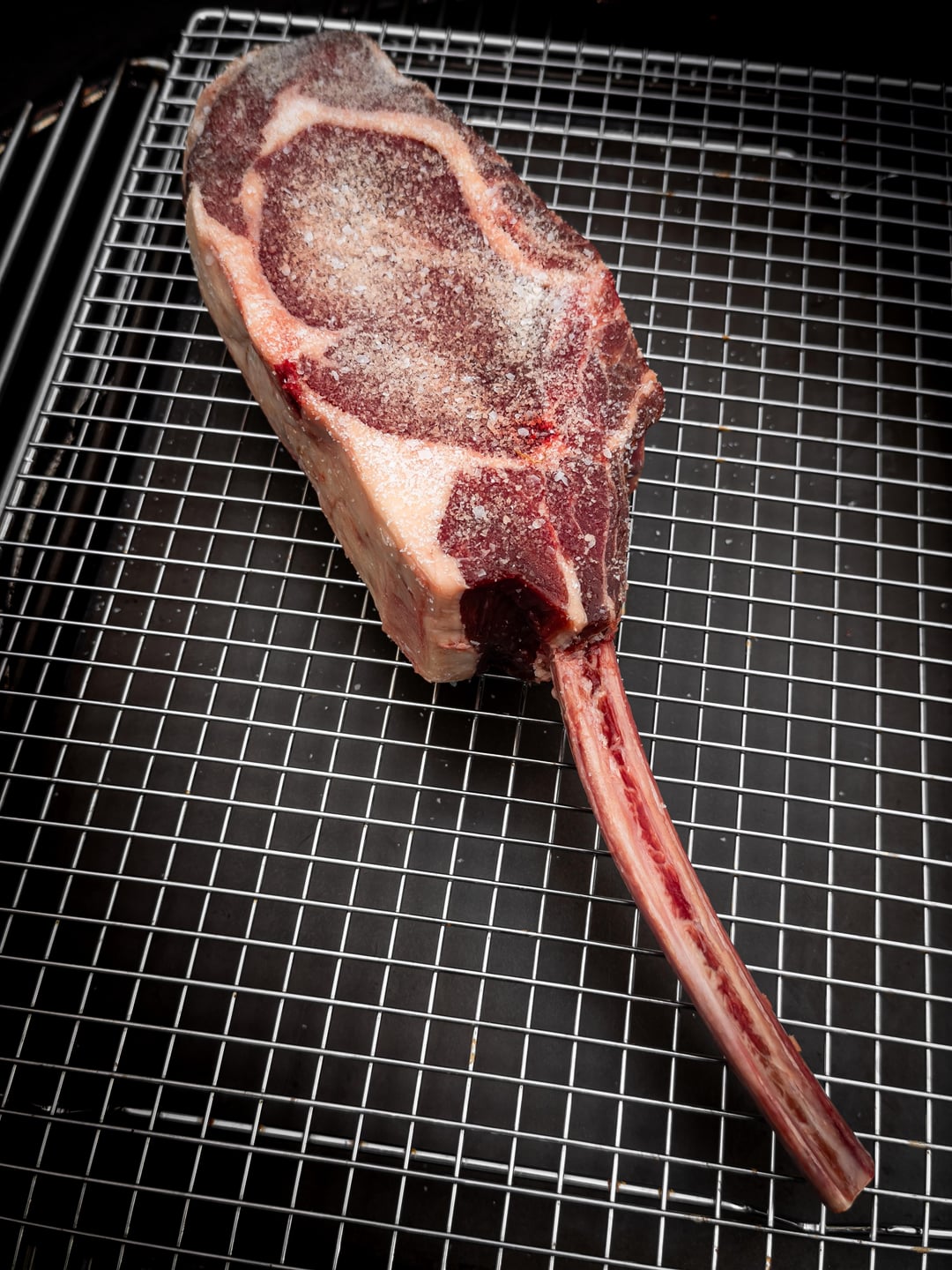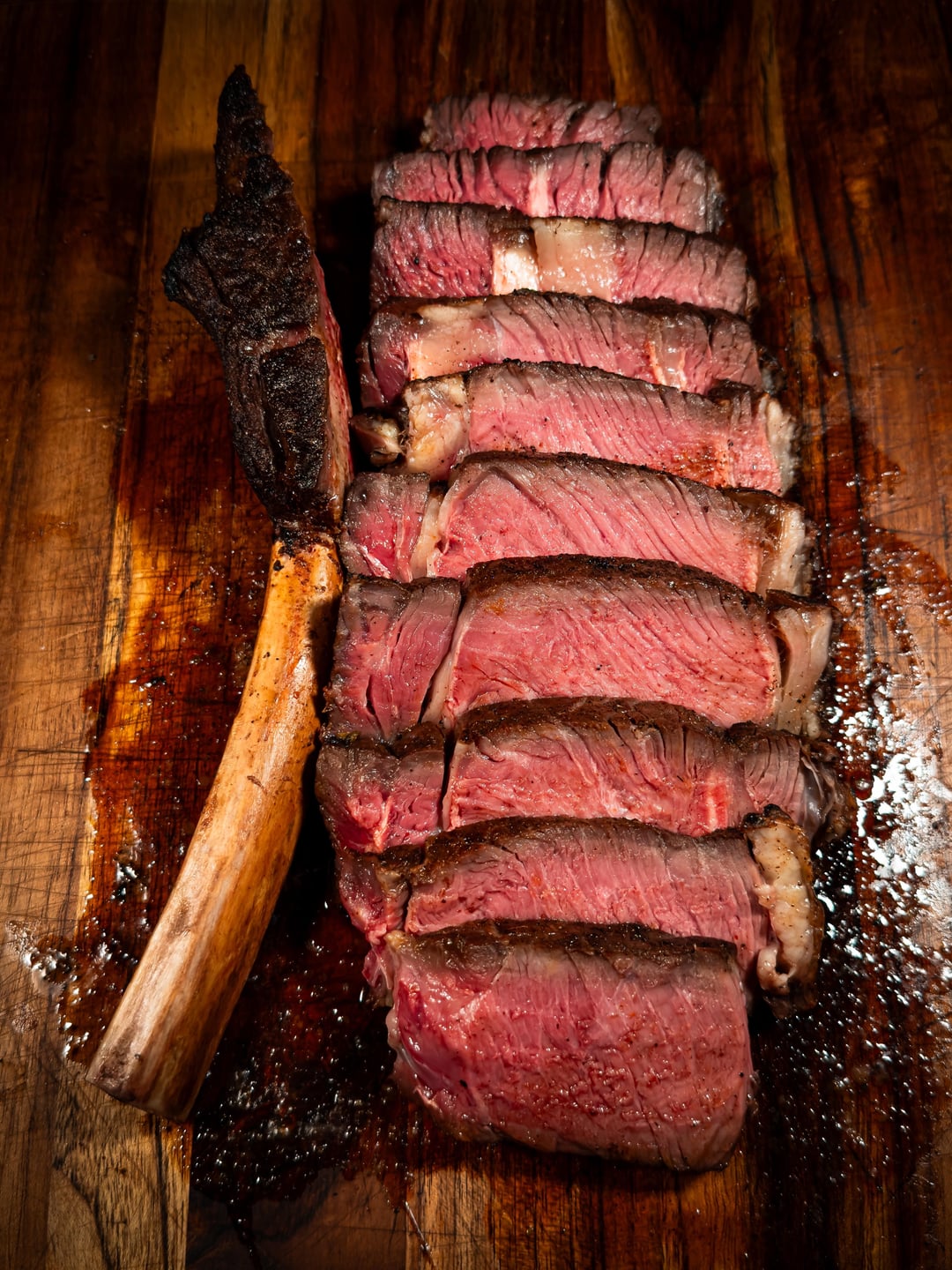 Beautiful bison tomahawk ribeye steak. Smoked over cherry wood to an internal temp of 110F, then seared over charcoal for 6 minutes and rested to a final internal temp of 134F.by TopDogBBQ Write A CommentYou must be logged in to post a comment.