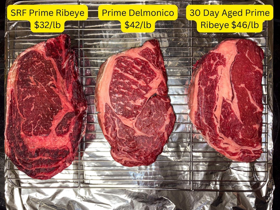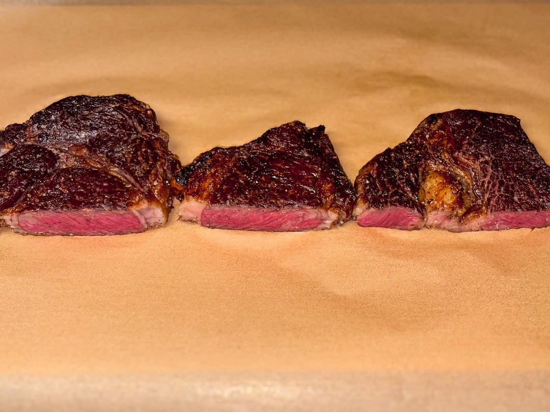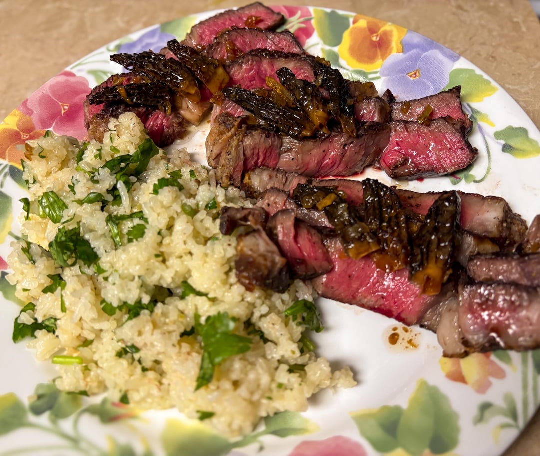 The Delmonico was by far the best (middle) followed by 30day aged (right). While all were excellent, both the flavor and tenderness of the Delmonico was preferred by the lady and I. Cost or aging didn’t matter as much which was a bit surprising. The next best was the aged steak. All three came from different gormet local grocery stores, all thick cuts. I tried my best to pick the cuts with similar spinalis dorsi sizes, weights, and thickness. All were cooked at slightly different timing to hit temp. Reverse seared, 135 peak, rested, served with morel rosemary butter and Cilantro tallow rice. It was heaven for sure with plenty of leftovers.