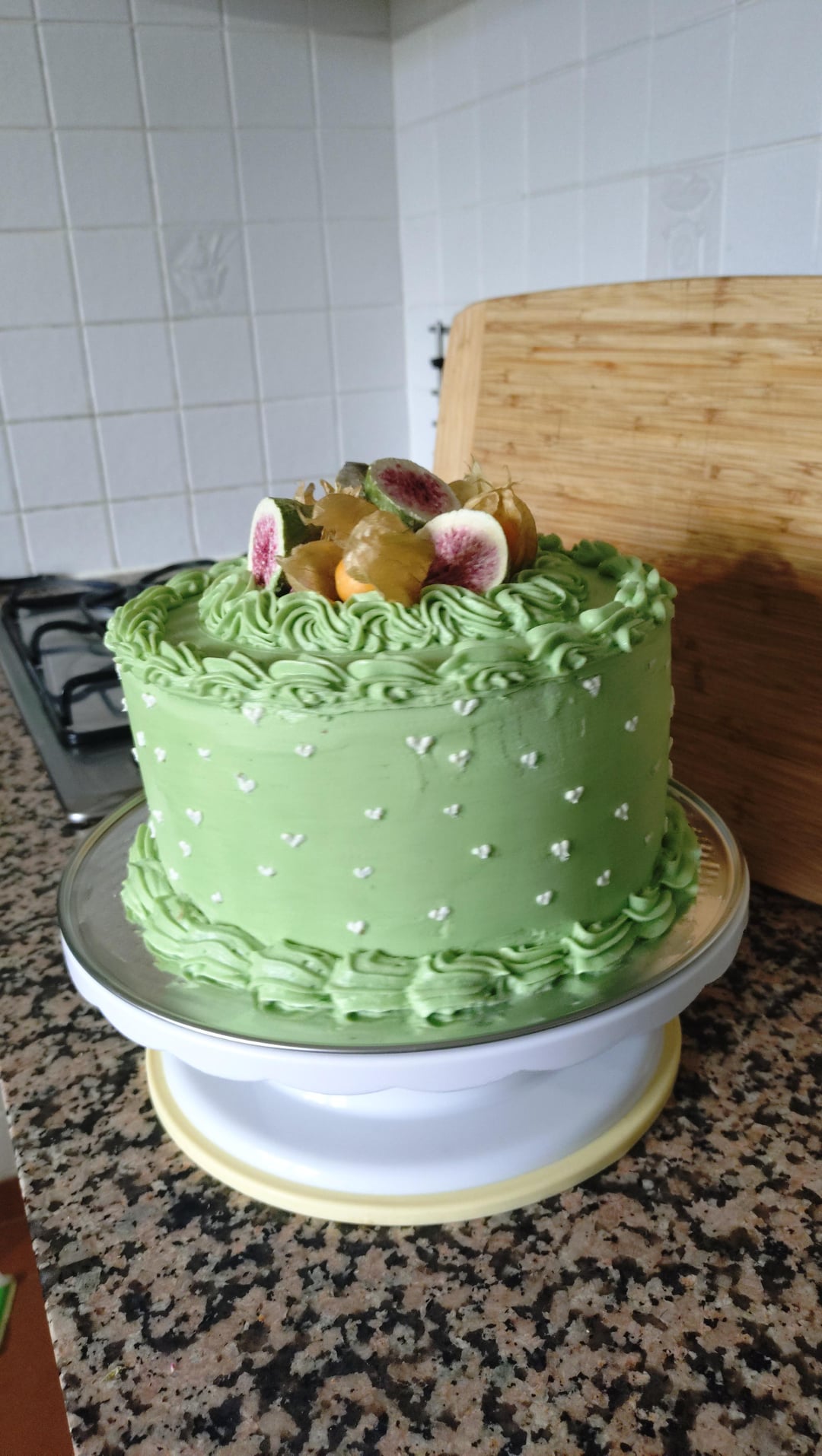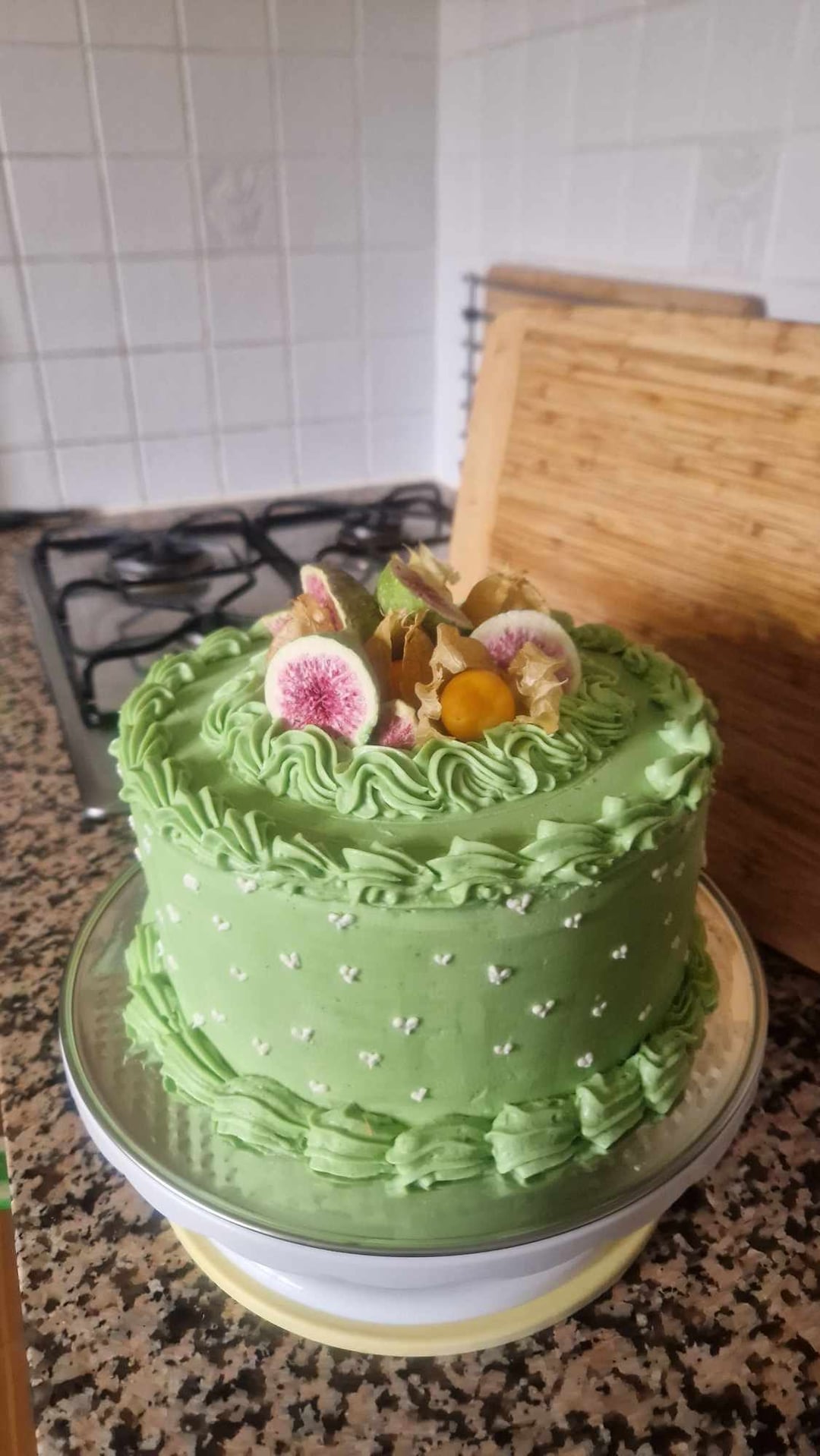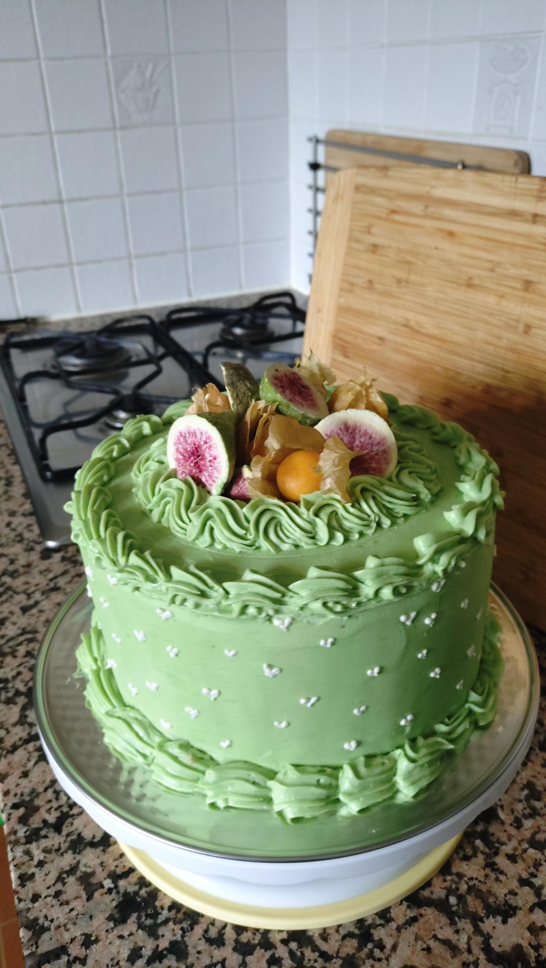 This year I did a lemon cake with lemon curd cottage cheese (actually tvaroh… Something like smooth cottage cheese) whipped cream filling and then decorated with lime ermine buttercream. The ermine buttercream isn't as easy to work with as I thought. It tastes better than regular buttercream but it was so hard to get smooth… Well, I actually didn't get it smooth as you can see lol.