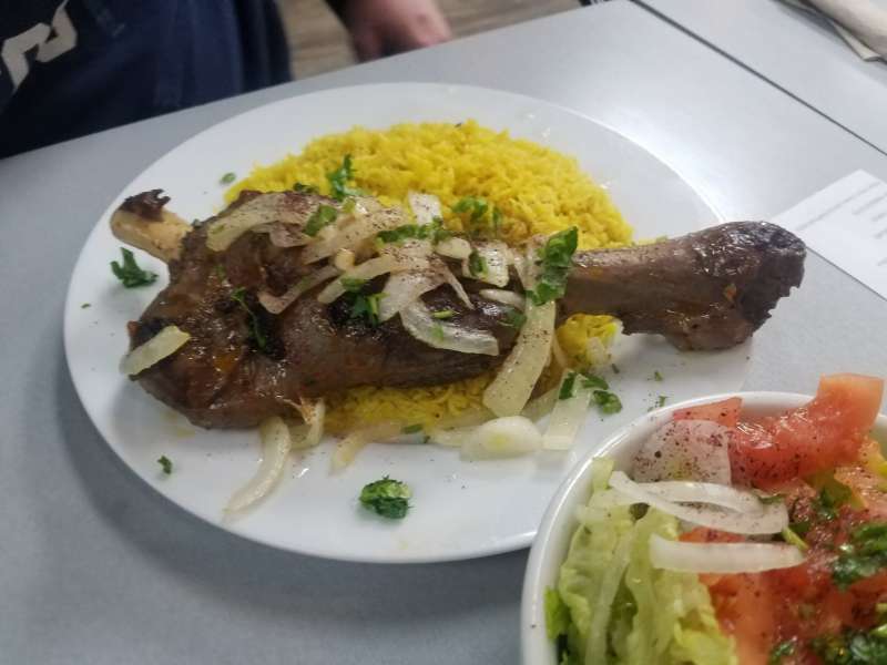 I ordered from the two-page entrée section. The entrée options were Kababs, Schwarma, Fish, Chicken, Gyro, Lamb Shank, Lentil Rice, Dolma, Falafel, and a Mixed Platter. I ordered the Lamb Shank. The entrée menu comes with your choice of rice, hummus, or fries. I went with the rice.