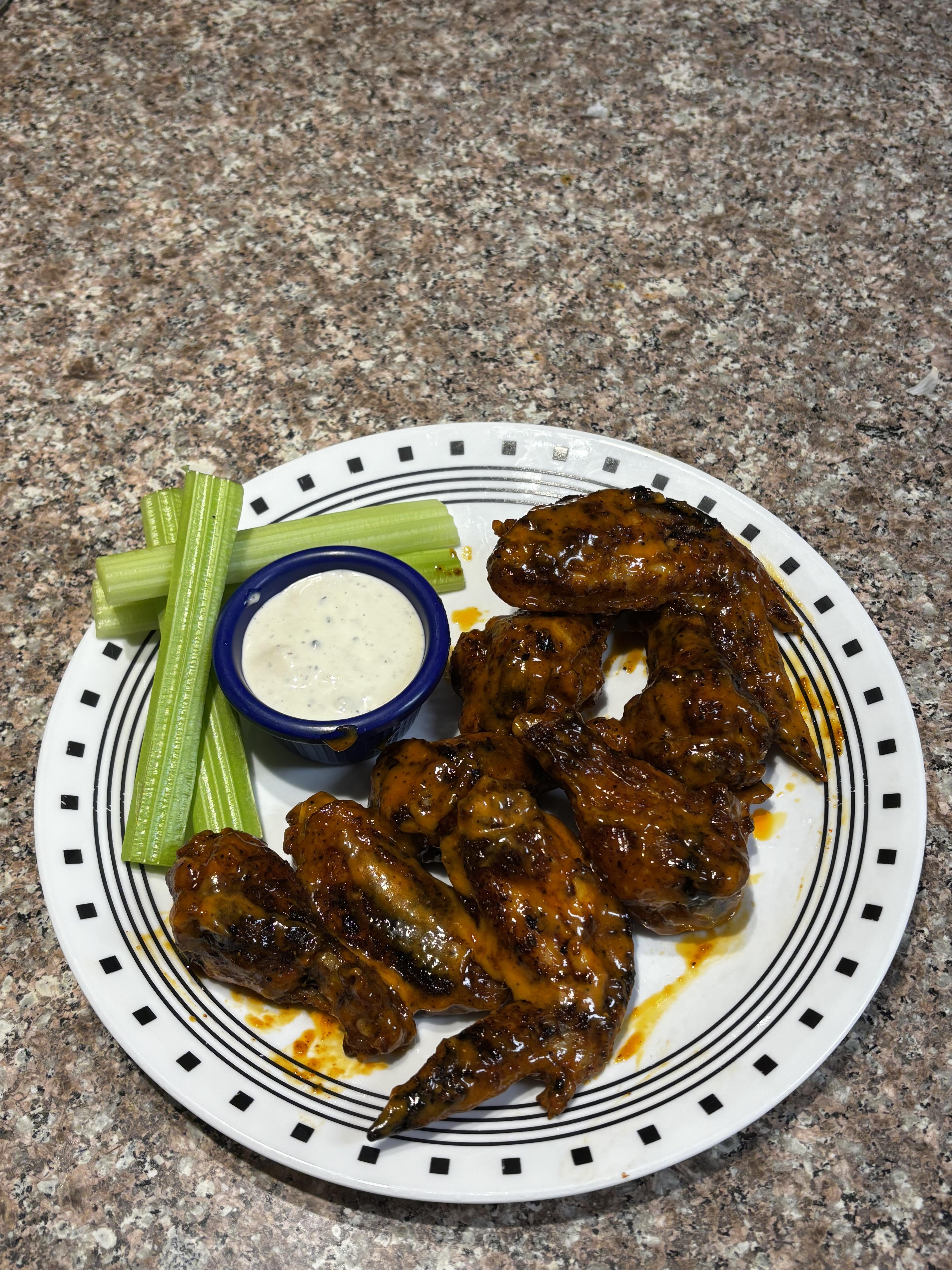 Kenji Method, rested in fridge for 8 hours. Tossed with homemade dry rub and cooked in oven at 450 for 50 min flipping halfway through.