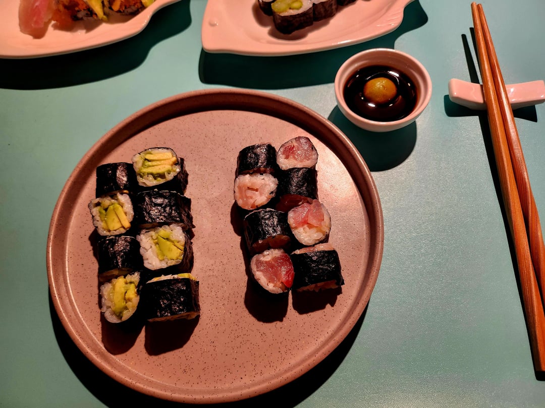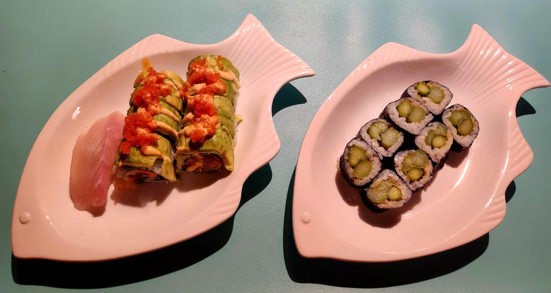Mahi Mahi nigiri, Mahi mahi dragon roll, asparagus roll, acacado roll, and a simple Mahi mahi roll with a bit of kewpie mayo. The mayo definitely added some much needed fatiness to this super lean fish.