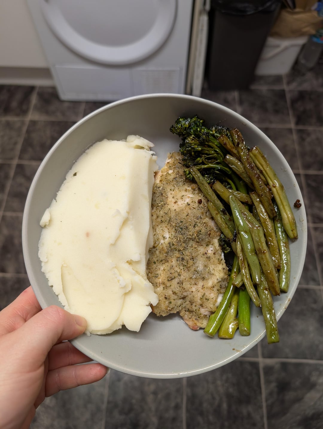 5. Herby Breaded Chicken Breast – 6.5/10 – The garlicky veg was lovely, the cheesy mash (which I turned in to garlicky cheesy mash) was also very enjoyable. The herby crumb on the chicken breast was nice but again, not super flavourful, or else I think this one would’ve ranked higher. Either way I wouldn’t be against making it again!