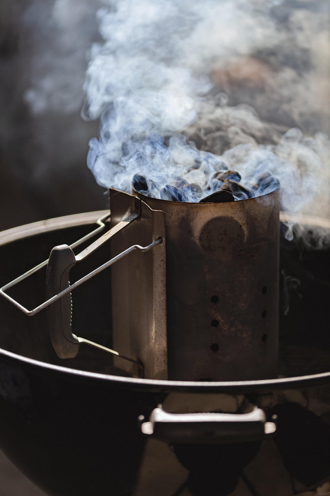 Light chimney of charcoal and put wings on indirect heat. Pat dry with paper towel.