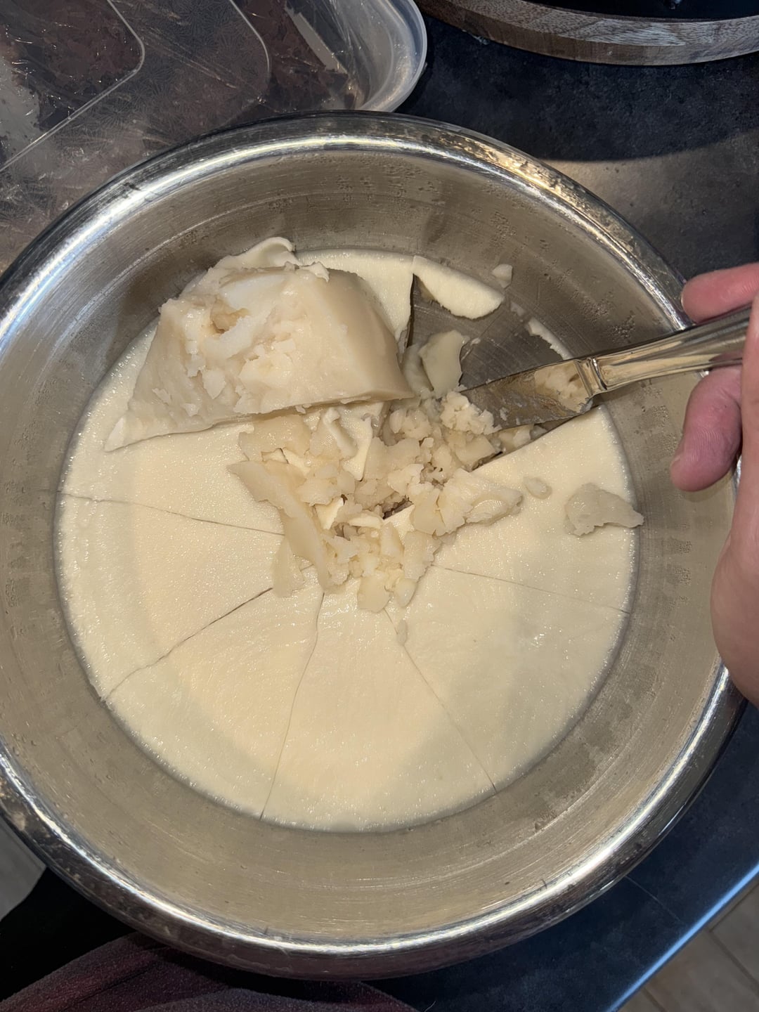 EDIT: I can’t tell how much ramen you have here so scraping may not be necessary. I usually make 1-2 gallons of tonkotsu at a time.