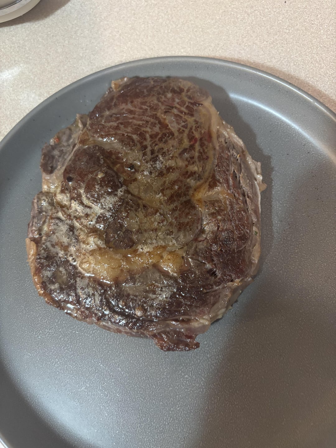 The sear is not great. Make sure to dry your steak very well and get your pan ripping hot when searing.
