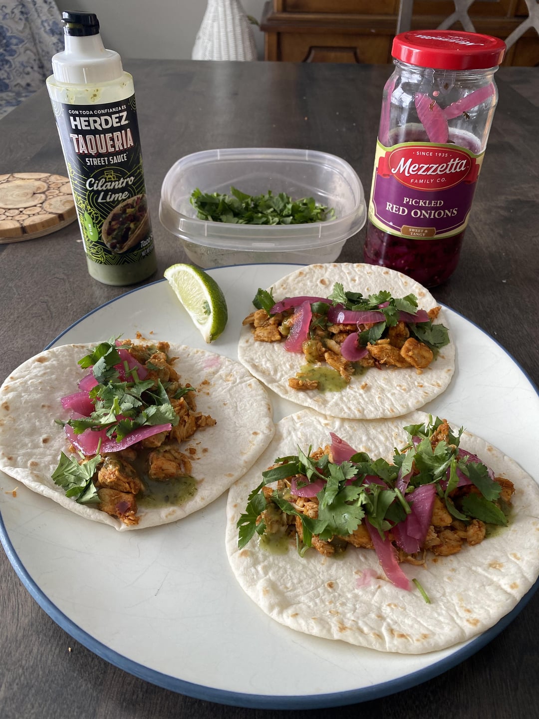 These are my favorite new quick tacos. Street tortillas with chicken, cilantro/lime sauce, and pickled red onions then finish with more fresh cilantro and lime juice. The tangy onions add great flavor (even gets the kids to eat ‘em). by anhyzer_mush Write A CommentYou must be logged in to post a comment.