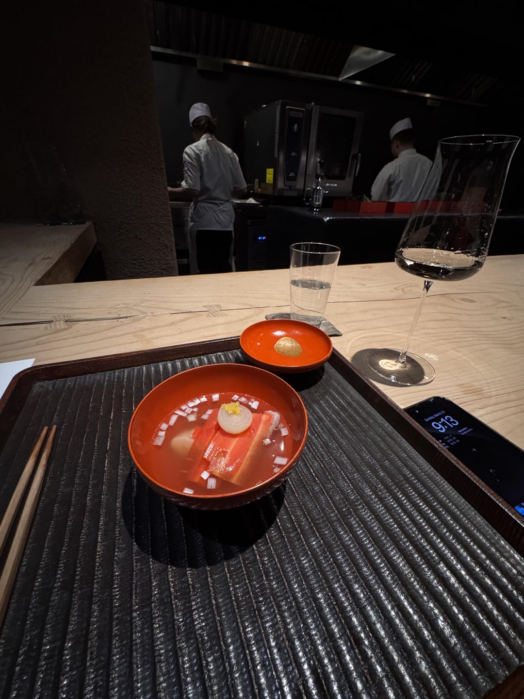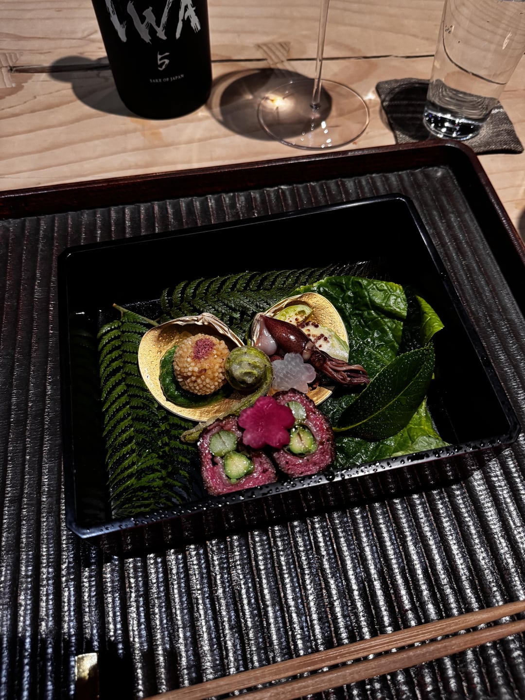I ended up ordering the Premium Sake Flight also which I believe cost $95 ($103.43 after taxes and fees). It came with three glasses of Sake they selected for me. I attached photos of the bottles at the end. I’m not much of a drinker but they paired well with the menu (particularly the IWA with the Hassun).