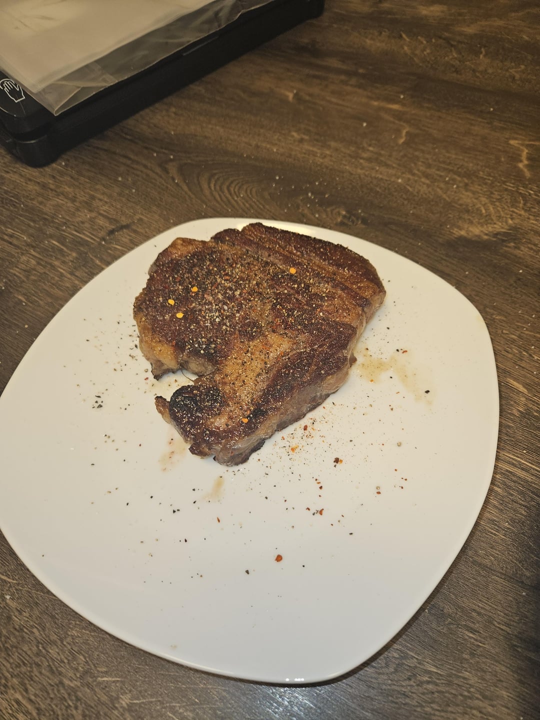 How did I do?Dry Aged Rib Eye steak. It was my first Dry Aged and my first Rib Eye, I didn't like it that much because of too much fat but the taste was really good.by RowTurbulent5221 Write A CommentYou must be logged in to post a comment.