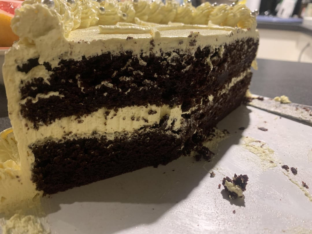 Chocolate cake with Swiss meringue buttercream. All vegan.