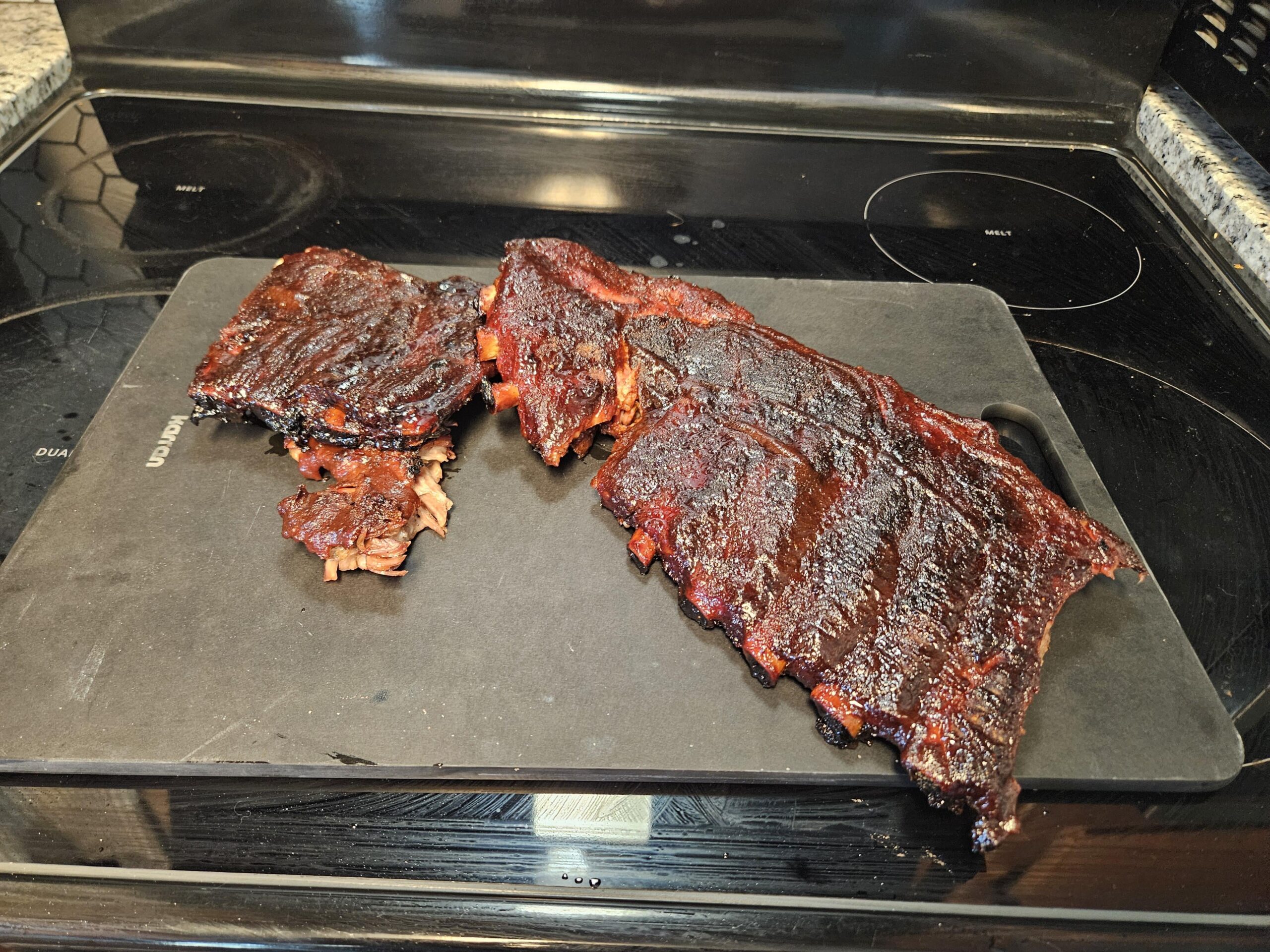 1. Looks great. I just did my first smoke today at 225 and it took them forever to get to temp (7 hours. I spritzed every 45 minutes or so too often?). I eventually gave up and set them at 275 to try and move things along as it was getting dark. How long did yours take?