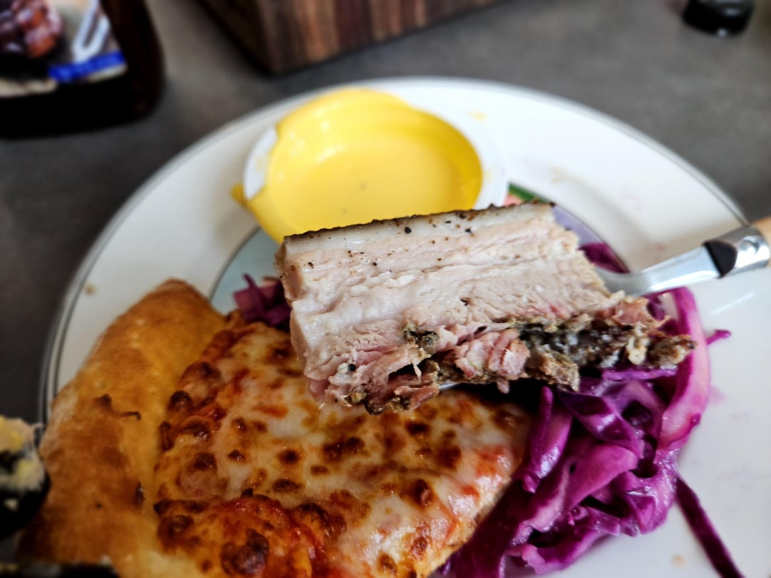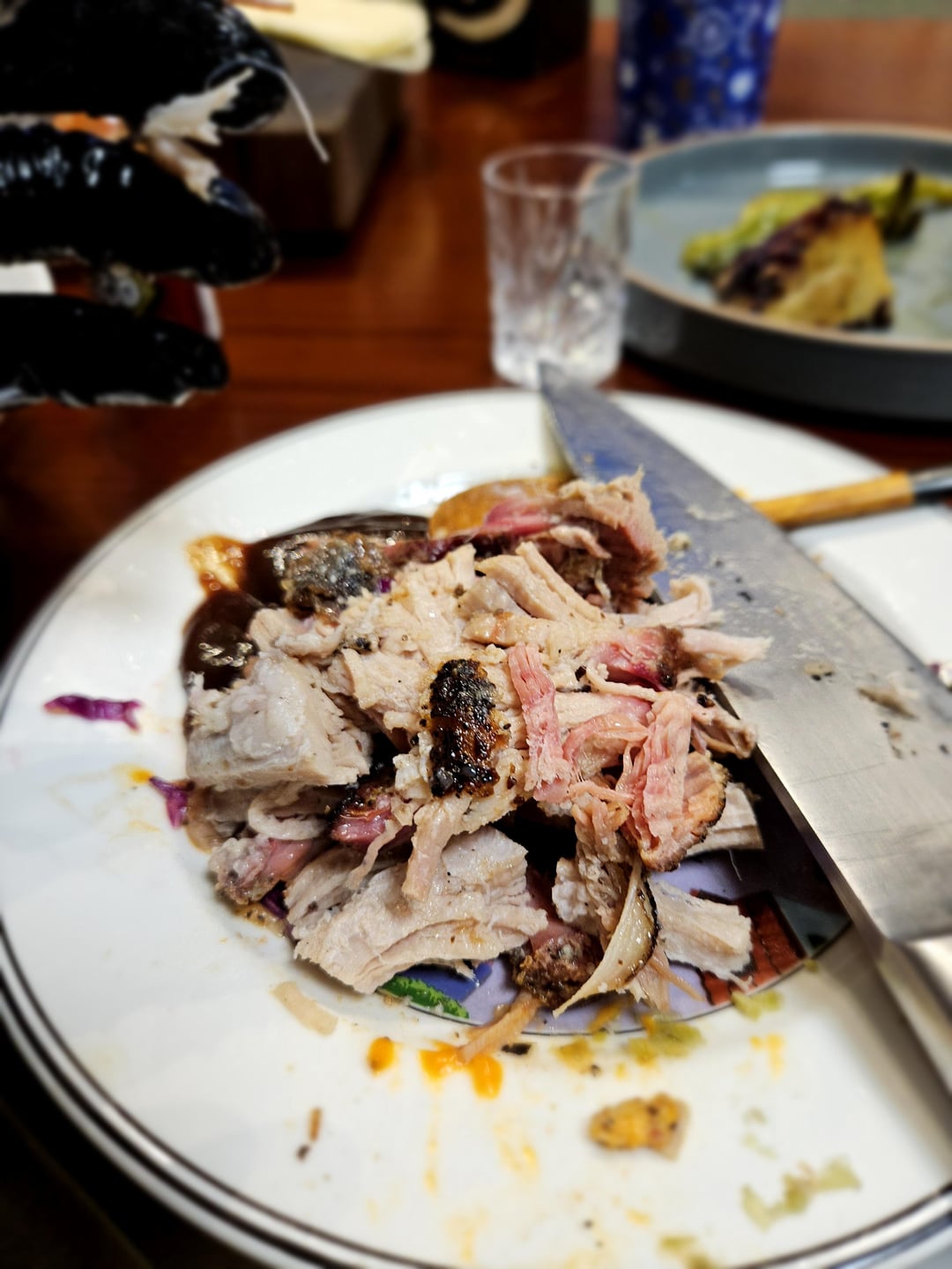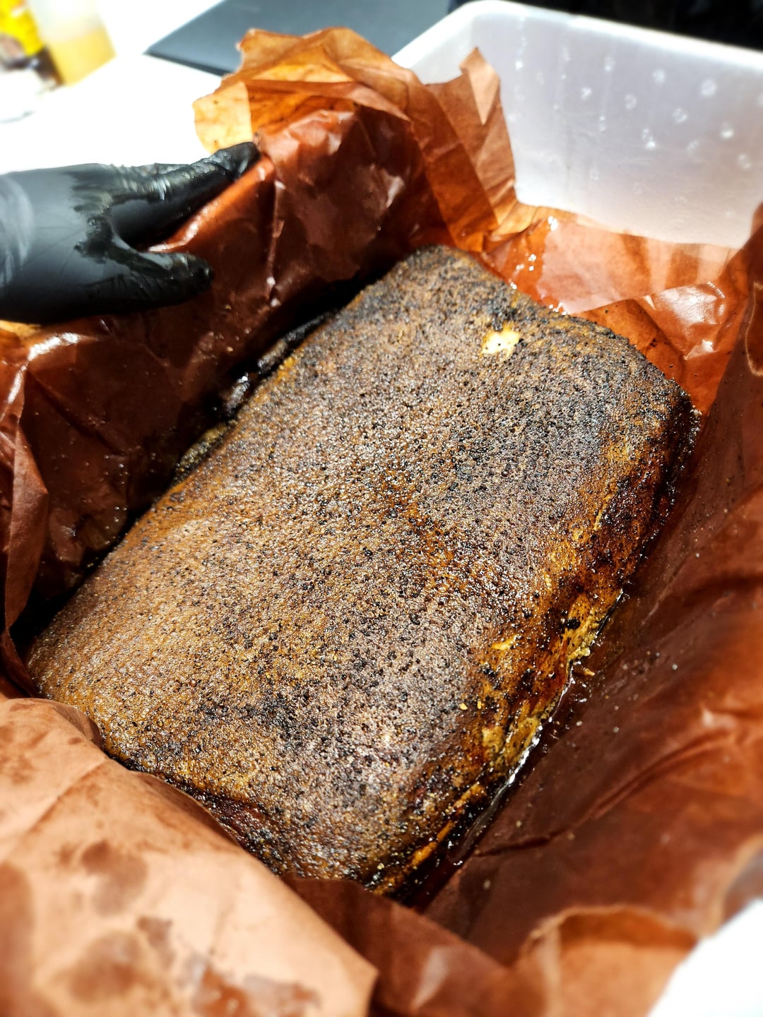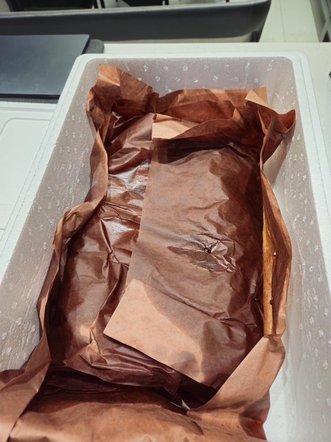 Aiming for some brisket-like results, I smoked it low and slow at 110C for about 14hrs. (including time I had to restart the charcoal because it unexpectedly rained… AND SNOWED)