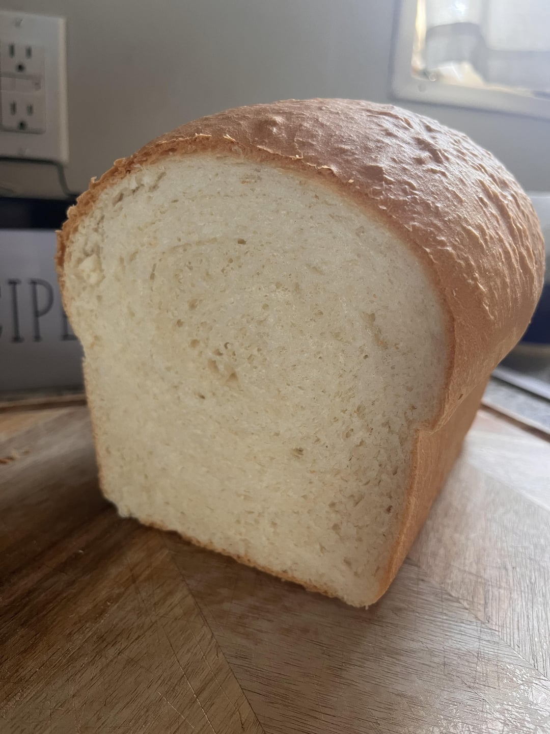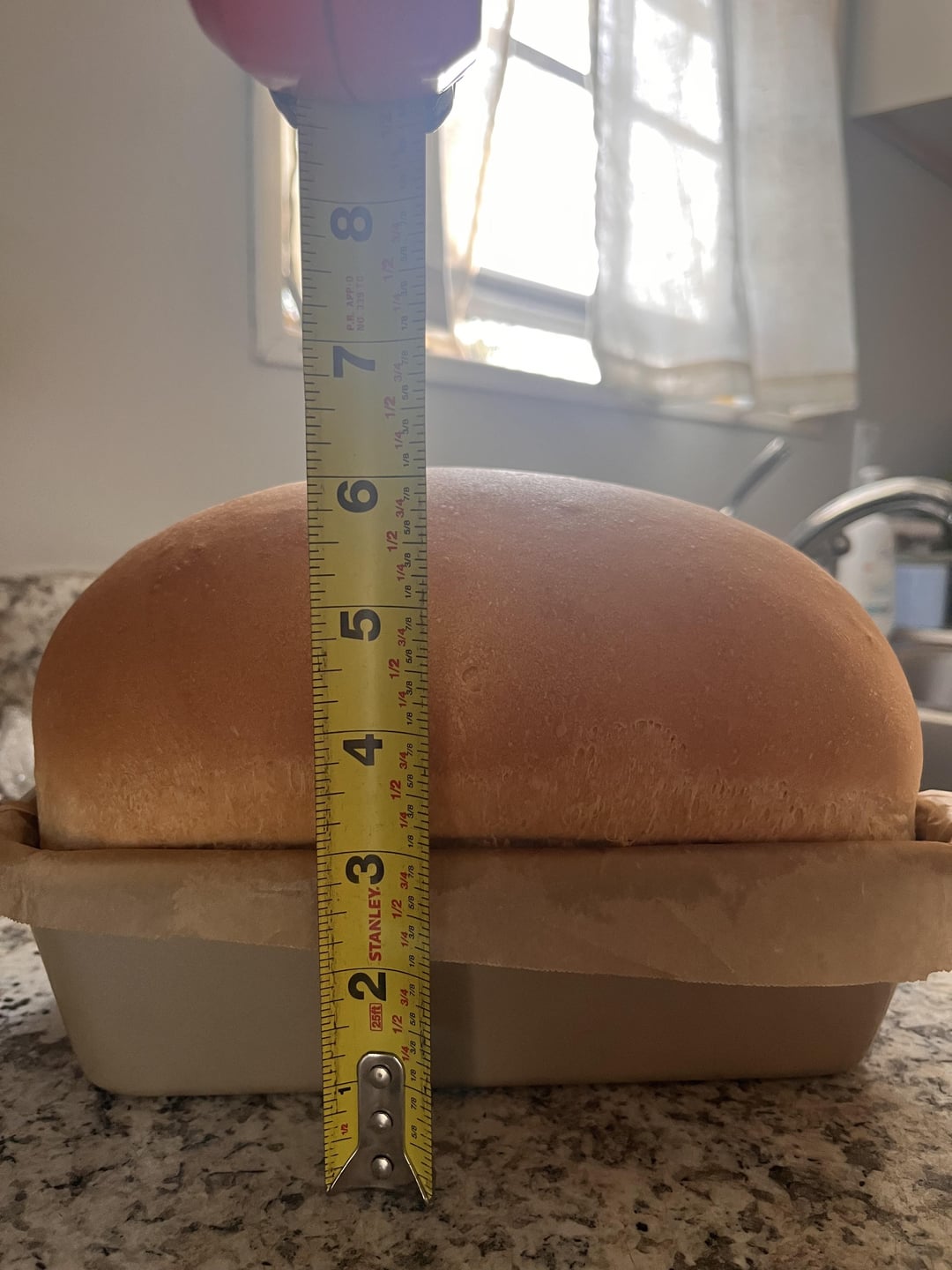 Made my usual sandwich bread recipe for 1 5×9 with a new oven we got earlier this month and just wanted to share. I used the bread proofing option on the oven at 95°F whereas I normally would proof in an oven preheated to 170°F then turned off with the door cracked. Thought for sure it was going to be overproofed or just a huge air pocket inside. 6 inches tall after baking 🤣 biggest loaf I’ve ever had!